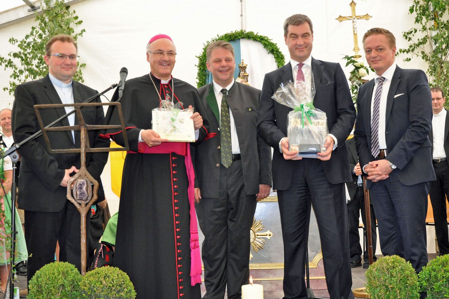 Die Wallfahrt zu „Unserer lieben Frau“ in Lohwinden feiert in diesem Jahr ihr 350-jähriges Jubiläum. Höhepunkt der Feierlichkeiten mit vorhergehender Festwoche vom 27. Juni bis 3. Juli war am Sonntag das Pontifikalamt mit Bischof Dr. Rudolf Voderholzer mit rund 800 mitfeiernden Gläubigen im Festzelt am Hof der Familie Huber in Lohwinden. Zu diesem Jubiläum war auch Staatsminister Dr. Markus Söder gekommen, der in seinem Grußwort den christlichen Glauben als Kraftquell und verbindendes Element bezeichnete, der die Menschen, die sich darauf einlassen, ruhiger und gelassener machen würde.