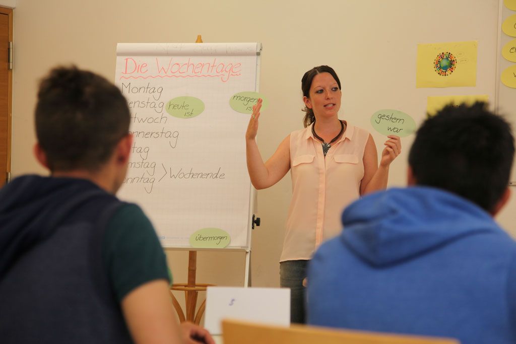 Sabrina Scherübl aus Hohenschambach führt die Flüchtlinge im Auftrag der Volkshochschule Regensburg (VHS) einfühlsam und spielerisch sowie wirklichkeitsbezogen ins Deutsche ein. Sie hat gerade ihr Studium Lehramt für die Grundschule mit Deutsch als Zweitsprache an der Universität Regensburg abgeschlossen. Der Unterricht in St. Josef dauert noch bis zum 11. September. Von Montag bis Freitag finden die Stunden zwischen 8.30 und 13 Uhr statt. Ab dem 15. September dann erfolgt eine weitere Einführung der jungen Männer für die folgende Berufsschulzeit.