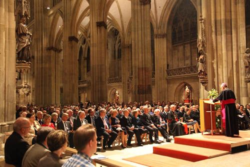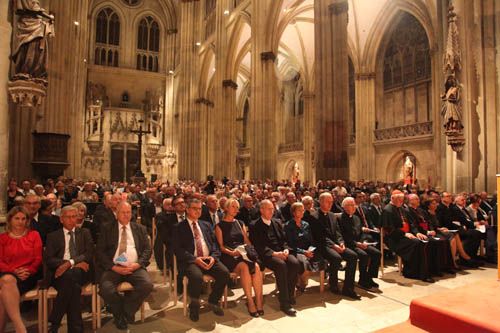 Es erwies sich für den Präfekten als ein leichtes, die aktuellen Zeitbezüge herzustellen bzw. darauf zu verweisen. Mit der Enzyklika „Laudato si“ habe Papst Franziskus die Sorge um die Erde als gemeinsames Haus aller zum Hauptthema einer religiös begründeten und wissenschaftlich ausgelegten Umweltethik gemacht. So könne etwa die weltweite Flüchtlingskrise nicht nur technisch-praktisch und ohne ein Minimum an religiös-ethischen Prinzipien bewältigt werden. Kardinal Müller: „,Wir schaffen das!‛ Gewiss – aber nur, wenn wir uns klar machen, dass wir geschaffen sind, das heißt: dass wir uns für das Wohl und Wehe unserer Brüder und Schwestern jetzt im Gewissen und am Jüngsten Tag einmal vor dem Richterstuhl Gottesverantworten müssen.“ Ohne Gottes Frieden in unseren Herzen könnten wir demnach die globale Krise nicht meistern; Liebe und Versöhnung, nicht Hass und Vergeltung führten in die Zukunft. Das sei die bleibende Botschaft der Regensburger Vorlesung von Benedikt XVI., formulierte Kardinal Müller abschließend.