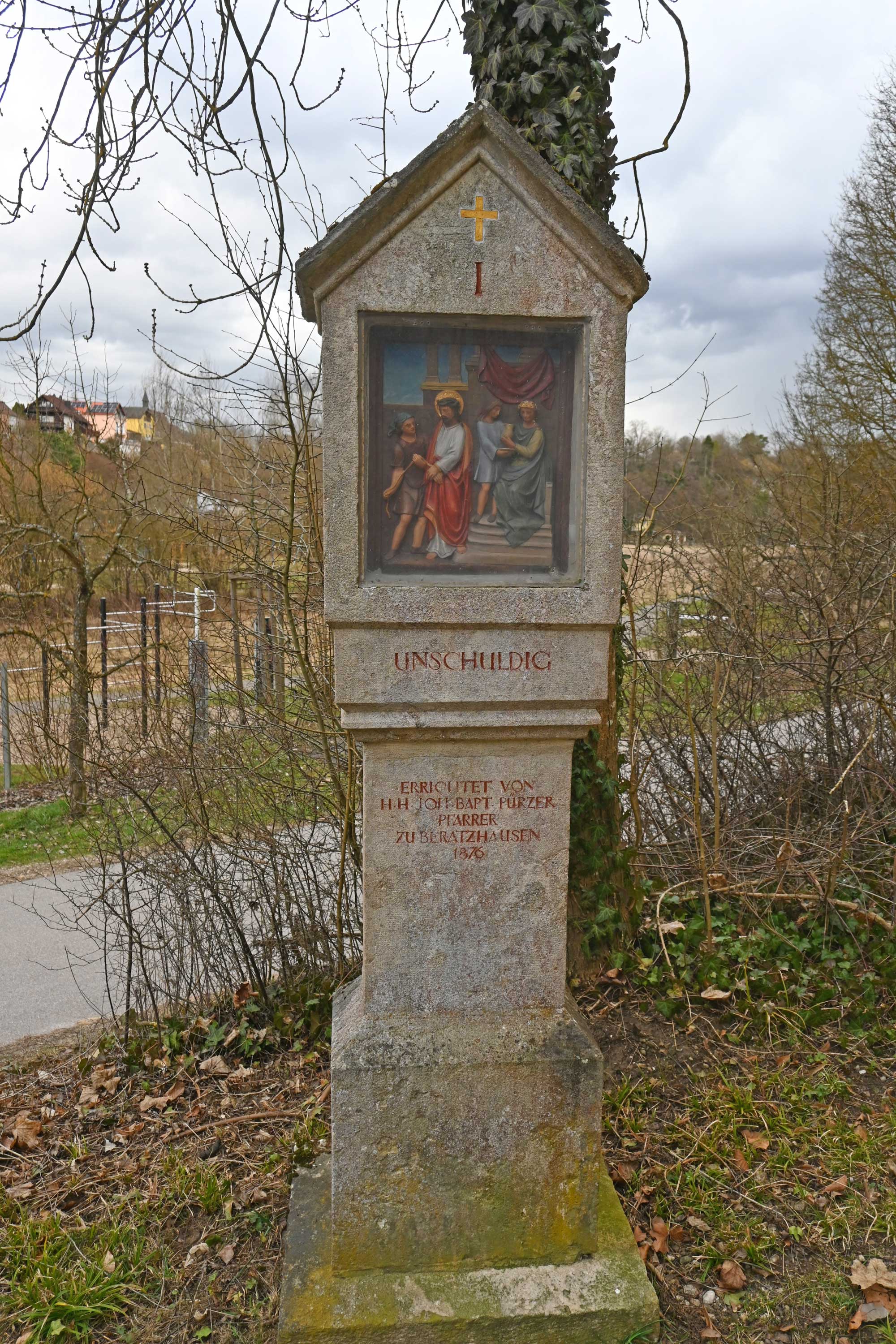 „1876 wurde aus dem Nachlasse des verstorbenen Pfarrers Johann Baptist Pürzer der neue Kreuzweg auf den Mariahilfberg mit Steinbildern aus Terracotta, sowie die Stufen 150 an der Zahl errichtet und ausgeführt.“