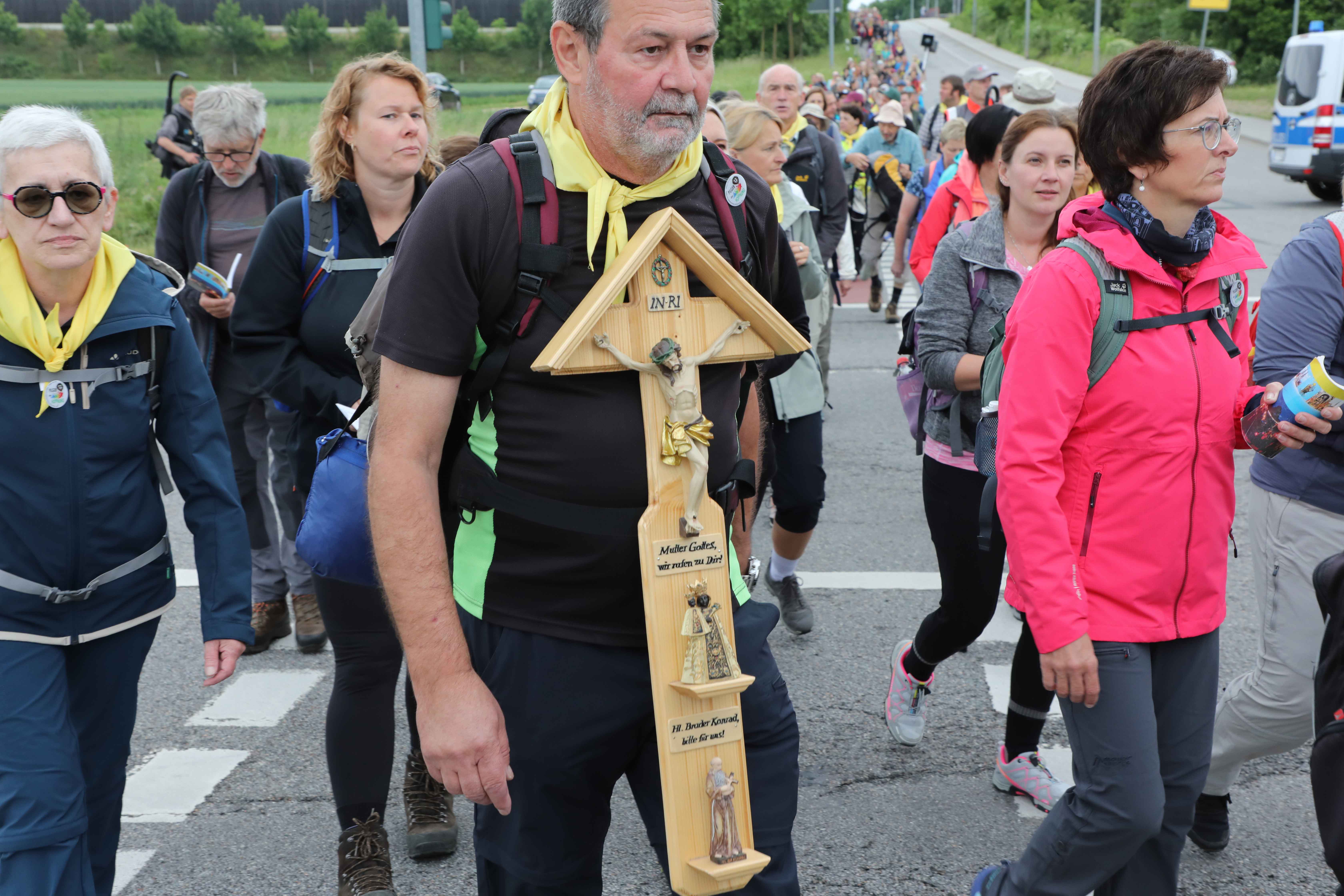 Die erste Etappe der Pilger bis nach Obertraubling begleitete der Regensburger Bischof betend und singend mit. Am Samstag wird Bischof Rudolf Voderholzer eine weitere Etappe mitgehen. Höhepunkt ist die große Abschlussmesse am Samstagvormittag in der Päpstlichen Basilika St. Anna mit allen Pilgern und Bischof Rudolf in Altötting. Auch in diesem Jahr konnten Gläubige, die nicht selbst an der Wallfahrt teilnehmen können, ihre Anliegen oder die eines geliebten Menschen im Regensburger Dom in einer Anliegenurne hinterlassen. Alle Anliegen werden in einem Rucksack während der Wallfahrt nach Altötting mitgetragen und vor Ort in die Gnadenkapelle gebracht. Im Anschluss findet auch wie im letzten Jahr noch ein Pilgerfest im Kapuzinerklostergarten in Altötting statt.