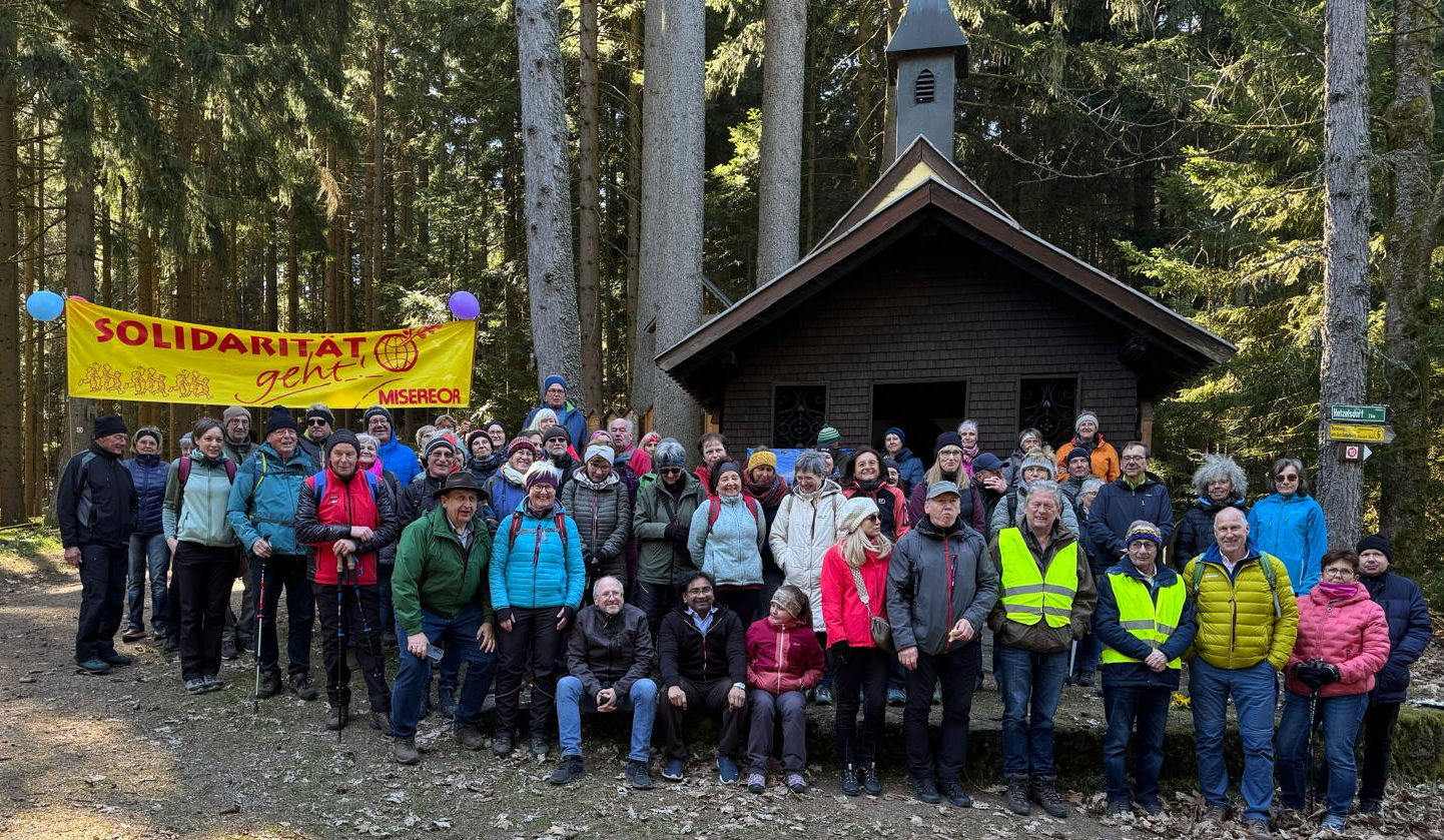Der Viechtacher Hungermarsch in der Fastenzeit wird bereits seit 1997 alljährlich vom Missionsarbeitskreis des Dekanats unter der Federführung von Diakon Sepp Schlecht durchgeführt und hat weit über die Region und das Bistum Regensburg hinaus Bekanntheit und Anerkennung erlangt. So waren auch heuer wieder rund 75 Teilnehmer aus über 20 Pfarreien in Kollnburg am Start, als Bürgermeister Herbert Preuß herzlich in seiner Gemeinde begrüßte und die Aktion eröffnete. In die Wanderschar eingereiht hatten sich auch die Pfarrvikar Stefan Brunner aus Drachselsried und Kiran Varigeti aus Viechtach. Diakon Schlecht hatte zur Einstimmung besinnliche Gedanken zum diesjährigen Misereor-Motto „Auf die Würde! Fertig! Los!“ mitgebracht.