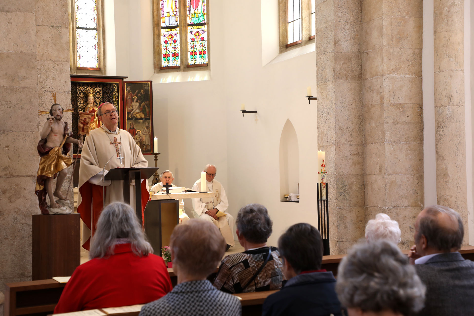 Er selbst, so begann Weihbischof Graf seine Predigt, habe erst vor zehn Jahren einen eigenen Haushalt aufbauen müssen, als er Weihbischof geworden war. Und er sei dankbar dafür, dass er gleich eine Haushälterin mit einer halben Stelle gefunden habe. Er selbst sei es gewohnt, in seiner Wohnung alleine zu sein, er kenne jedoch viele Pfarrer, für die es besser sei, dass sie nicht alleine im Pfarrhaus lebten.