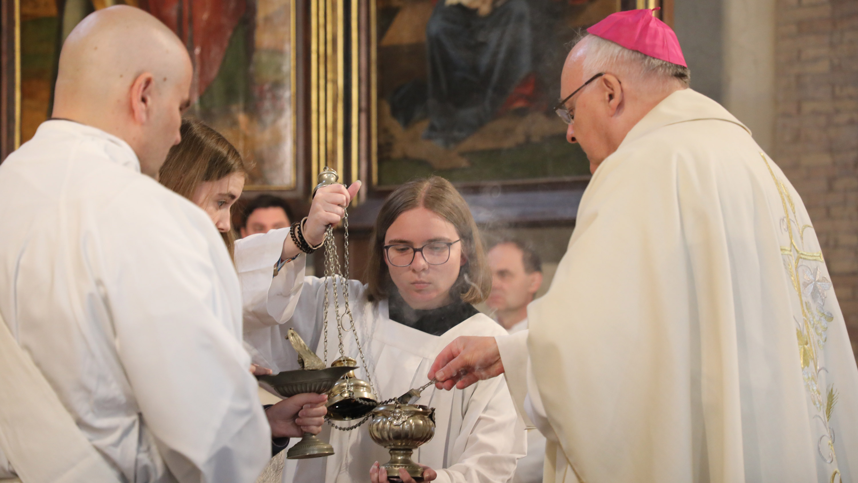 Täglich feierten die Pilgerinnen und Pilger gemeinsam die hl. Messe. Für viele von ihnen gehörte das Feiern der Gottesdienste, begleitet von kräftigem Gesang und ansprechenden Predigten, zu den prägendsten Momenten der Wallfahrt. Natürlich trugen auch die ehrwürdigen, oft bis zum Rand gefüllten Kirchen ihren Teil dazu bei. Die Busgruppen, unter ihnen auch eine Reisegruppe junger Leute rund um Jugendpfarrer Matthias Strätz, feierten ihren ersten gemeinsamen Gottesdienst am Ostermontag im Stift Wilten in Innsbruck. Die Fluggruppen trafen sich abends zur Eucharistiefeier beim Grab des hl. Sebastian in der Kirche San Sebastiano. Am Dienstag feierten die Pilger den Eröffnungsgottesdienst in der Basilika Santa Maria Maggiore. In zweierlei Hinsicht eine bewegende Feier, denn zum einen trafen sich hier erstmals alle Pilgergruppen – über 300 Gläubige an der Zahl, zum anderen sollte an diesem Ort Papst Franziskus seine letzte Ruhestätte finden. Auch der von Diözesanmusikdirektor Christian Dostal zusammengestellte Chor samt Blechbläsern gab in der Marienbasilika sein Debüt und sollte während der Wallfahrt für viele Gänsehautmomente sorgen; beispielsweise während des Gottesdienstes am Mittwoch in Santa Maria dell‘Anima und nachmittags bei der Vesper in der Papstbasilika Sankt Paul vor den Mauern sowie am Donnerstagvormittag beim Gottesdienst in der Kirche des Campo Santo Teutonico und beim Abschlussgottesdienst am Freitag in der Lateranbasilika.