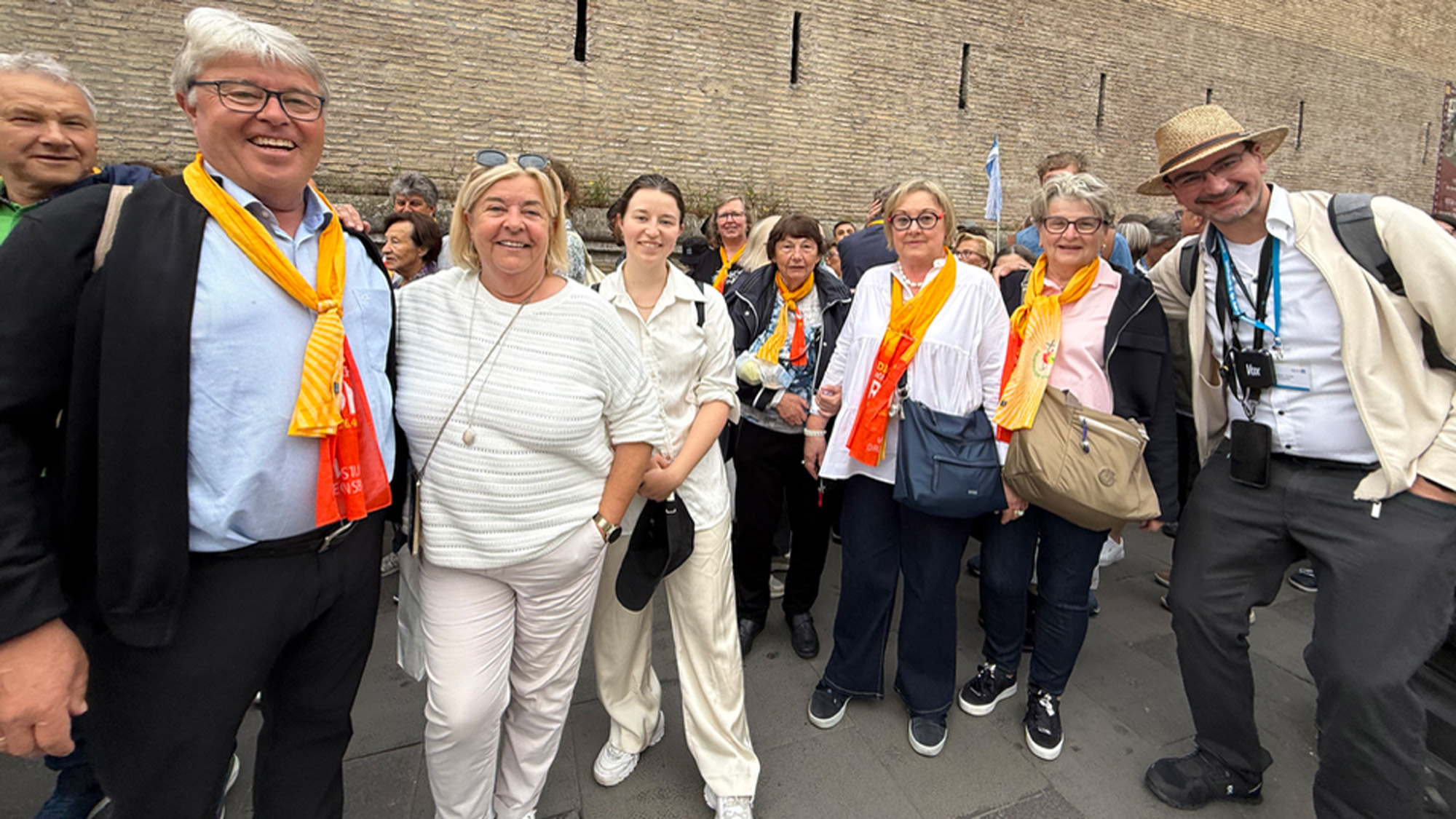 Es sollte eine „ganz normale“ Diözesanwallfahrt werden – unter dem Zeichen des Heiligen Jahres 2025. Doch dann erreichte die Pilgerinnen und Pilger die Nachricht vom Tod Papst Franziskus‘. Von diesem Moment an erhielt die Diözesanwallfahrt eine andere Dimension. Statt beim ursprünglichen Programm zu bleiben, wurde der Ablauf – auf Wunsch der Teilnehmer – schnell auf die neue Situation angepasst. Während der gemeinsamen Gottesdienste und Gebetszeiten wurde Papst Franziskus gedacht. Höhepunkte der Anteilnahme waren schließlich am Mittwoch die Teilnahme an der Übertragung des Sarges von Santa Marta in den Petersdom, und ein Tag später, am Donnerstag, der persönliche Abschied von Papst Franziskus am Sarg nach über zwei Stunden Wartezeit.
