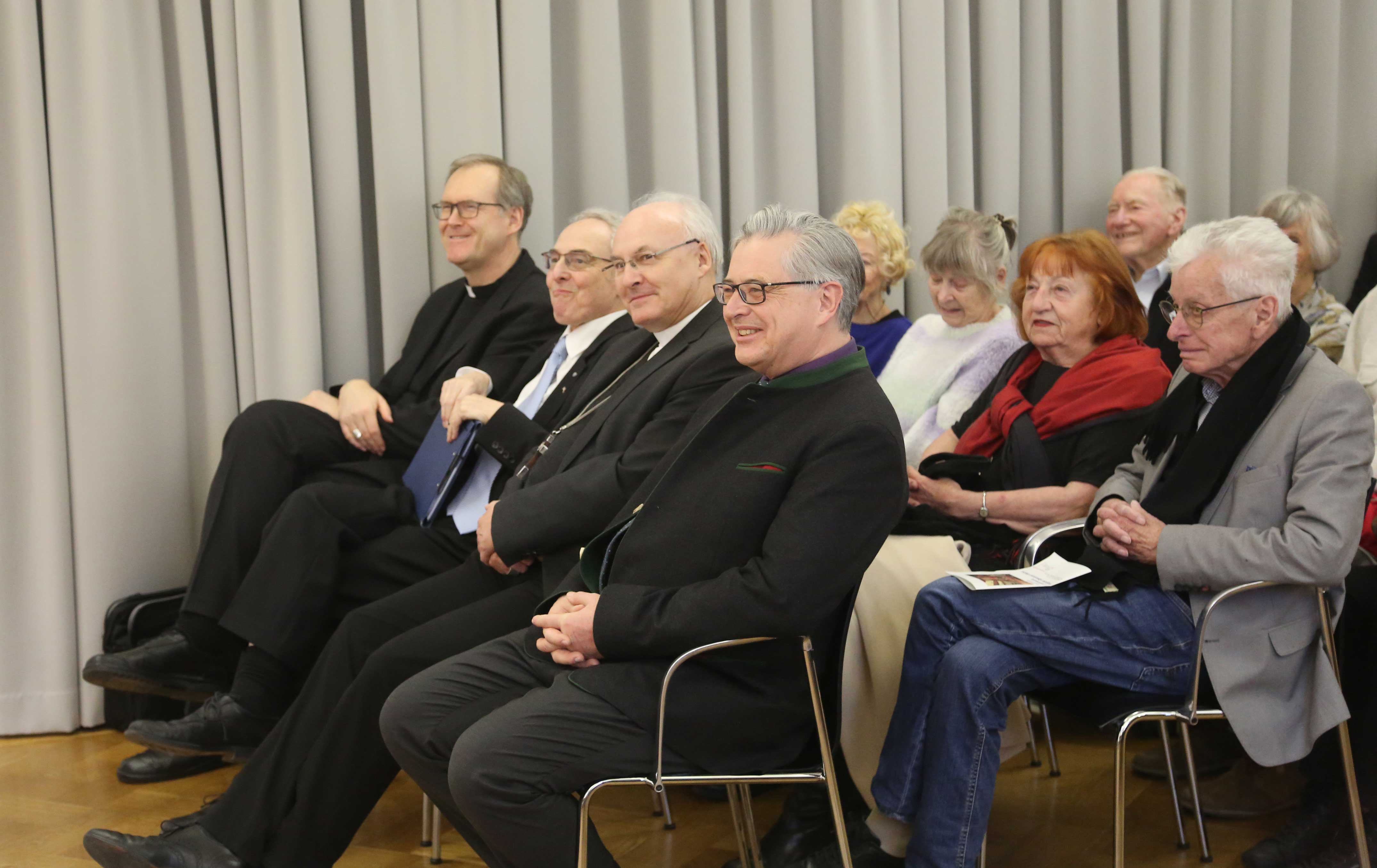 Den Auftakt des Abends machte der aus Augsburg stammende Monsignore Dr. Florian Schuller, der von 2000 bis 2018 Direktor der Katholischen Akademie in Bayern war. Er führte das Publikum nach Venedig in die Scuola di San Giorgio degli Schiavoni, den historischen Versammlungsraum einer Bruderschaft, zu einem Gemälde des venezianischen Malers Vittore Carpaccio (* zwischen 1460 und 1465 † um 1525), das offiziell den Titel „Der Heilige Augustinus im Studierzimmer“ (gemalt 1502) trägt. Da an diesem Abend durchaus auch neue Deutungsvorschläge der Gemälde gemacht werden sollten, gab er dem Bild und damit seinem Referat den Titel „Ein Fenster nach drüben – Augustinus und Hieronymus in geistig-geistlichem Dialog. Die theologische Botschaft des Malers Vittore Carpaccio“. Der Kirchenlehrer Augustinus befindet sich in seinem Studierzimmer, auf dessen Detailreichtum und deren tiefere Symbolik Dr. Schuller an diesem Abend ausführlich einging. In seinem Brief an den Kirchenlehrer Hieronymus schildert er diesem seine Gedanken, die er sich über die zentrale Frage nach dem ewigen Leben macht.