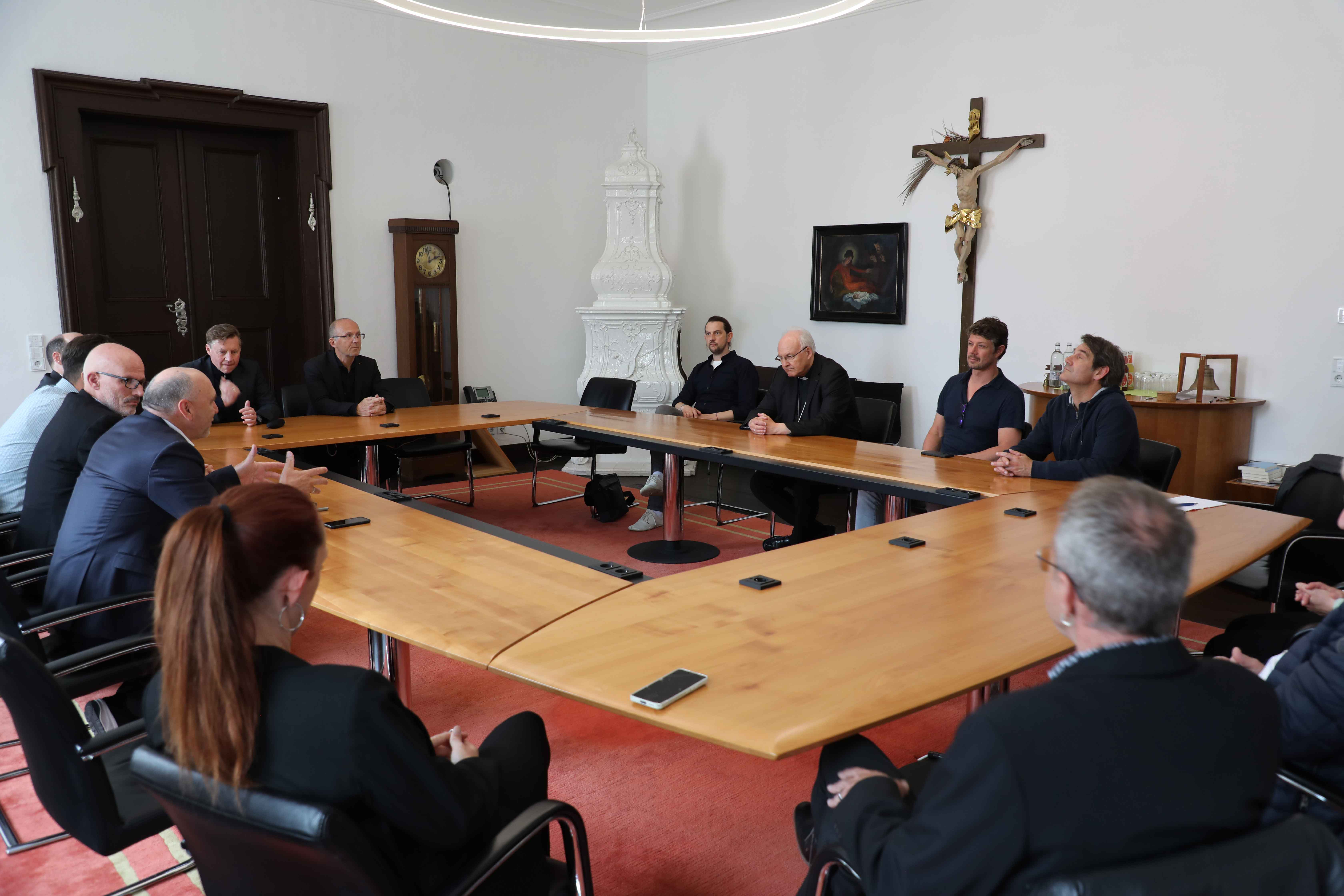 Anlässlich der Diözesanbaumeistertagung auf bayerischer Ebene trafen sich auf Einladung von Baudirektor Paul Höschl in Regensburg am Dienstag Vertreterinnen und Vertreter der bayerischen Diözesanbauämter. Die Fachleute stammen aus den (Erz-) Diözesen Passau, Eichstätt, Würzburg, Bamberg, München-Freising, Augsburg und Speyer. Bei den Treffen steht der fachliche Diskurs stets im Mittelpunkt. Auch Bischof Dr. Rudolf Voderholzer traf sich mit den Gästen, um sich mit ihnen über die Zukunft der Kirche auszutauschen.