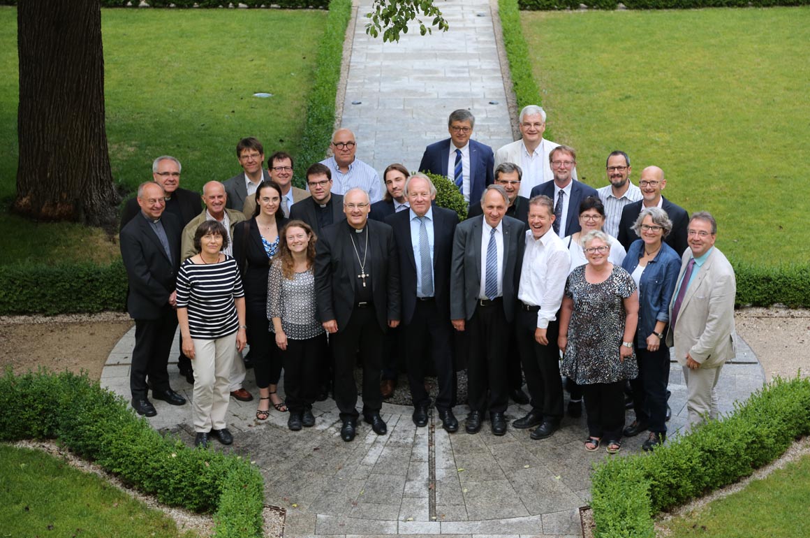 Die Geistlichen des <link http: www.regensburg-evangelisch.de _blank external-link-new-window kirche im donaudekanat>evangelischen Stadtdekanates besuchten am vergangenen Donnerstag Bischof Rudolf Voderholzer. Im Ordinariat traf man sich zum gemeinsamen Gebet, zum Kennenlernen und zu einer zünftigen Brotzeit. Mit dabei waren auch die Mitglieder der Ökumenekomission des Bistums Regensburg. Bischof Rudolf hatte nach dem <link record:tt_news:5405 internal-link>Regensburger Religionsgespräch am 12. Mai eingeladen. Das Gruppenfoto zeigt die Gemeinschaft unter dem Birnbaum im Hof des Ordinariates.