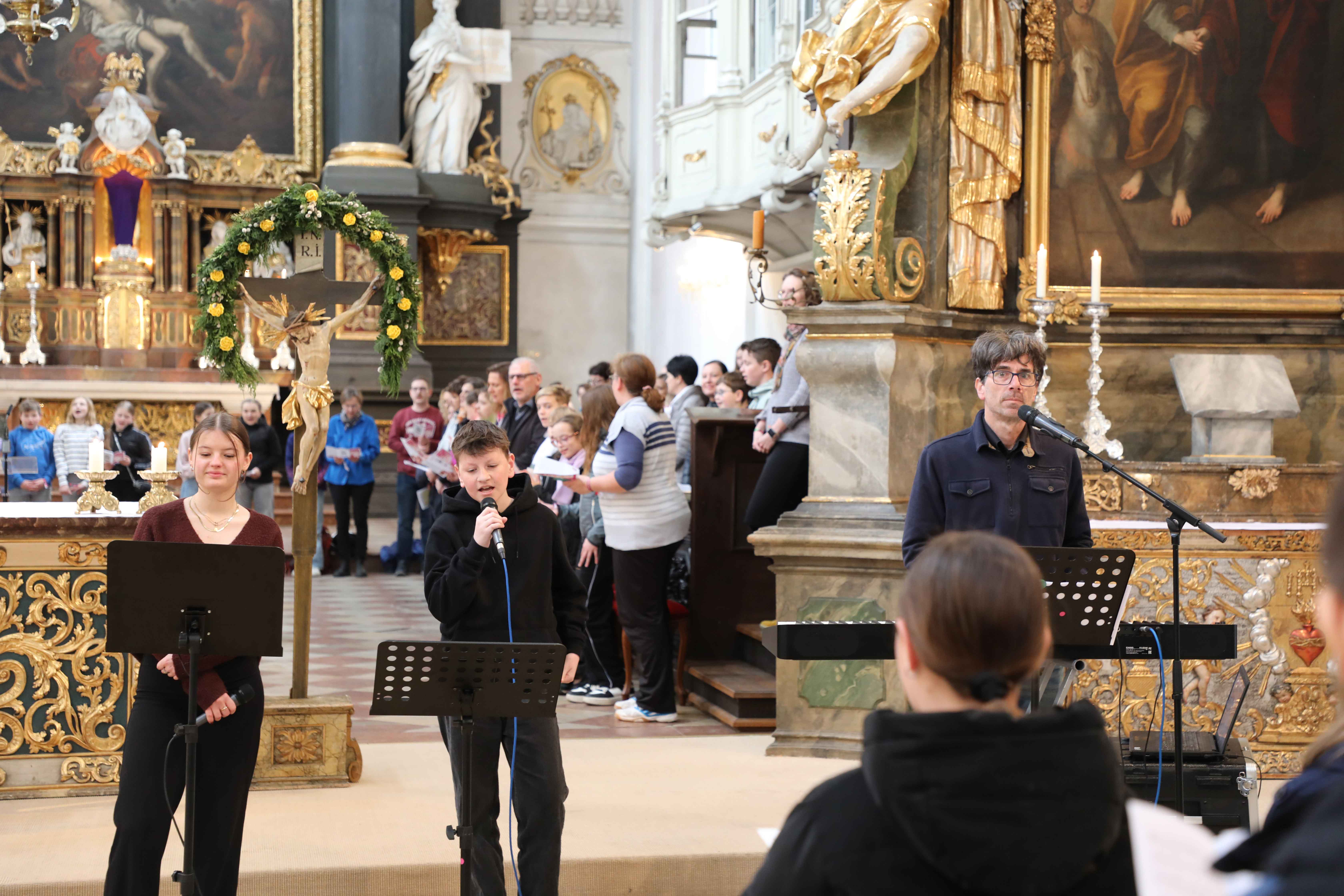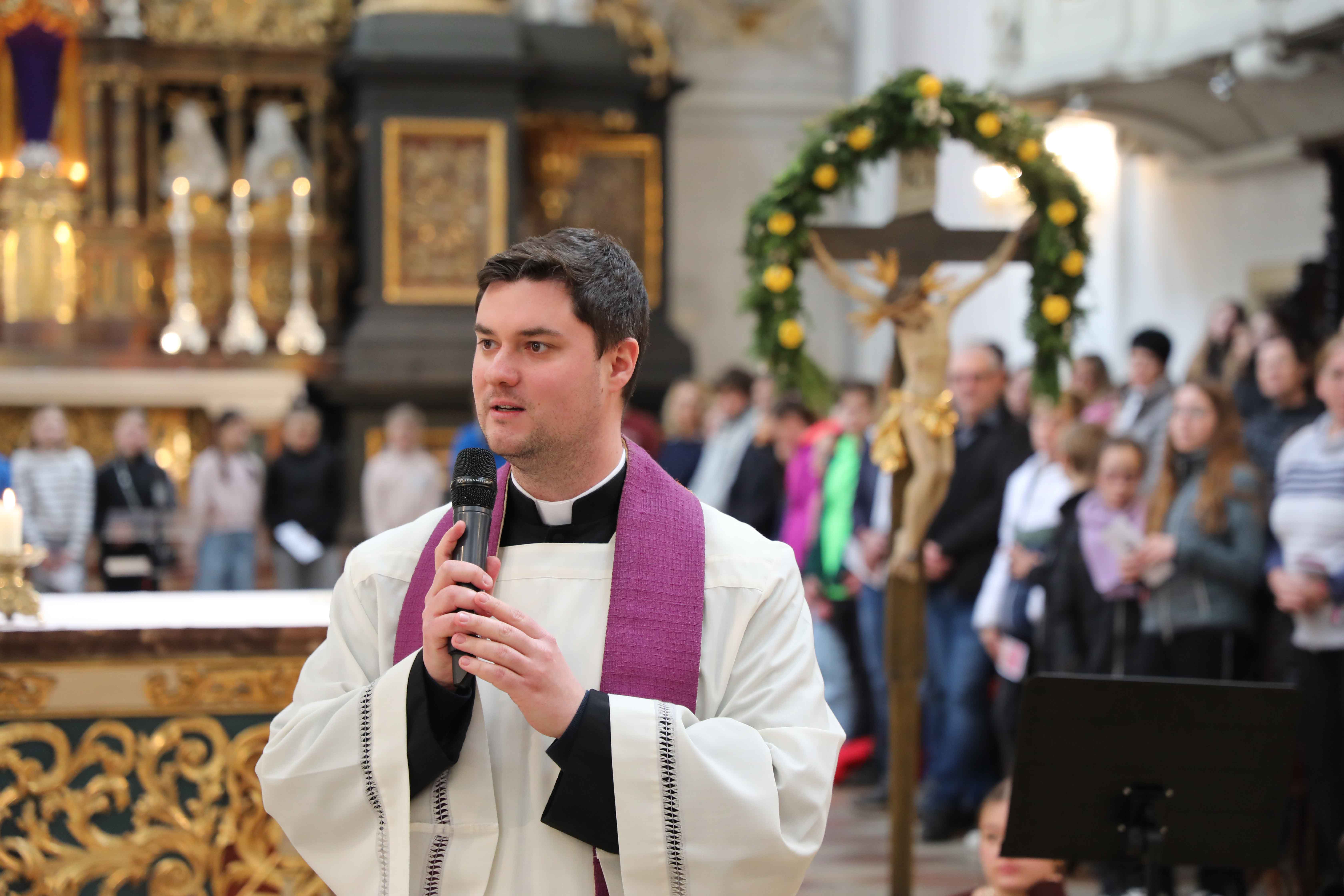 Jugendpfarrer Matthias Strätz gestaltete die Andacht mit der kräftigen musikalischen Unterstützung der Band Makaber aus Regenstauf. Auch für den Jugendpfarrer war diese Andacht ein starkes Zeichen für ein junge, dynamische und aktive Kirche. Nach der Andacht machten sich die Firmlinge auf den Weg in die Sankt Marienschulen, wo sie bei Gummihuhngolf, einem Actionbound, einem Weihrauchworkshop und vielen anderen Aktivitäten einen tollen Nachmittag verbrachten. Zum Abschluss des U14-Tages nahmen die Jugendlichen am Abend auch an der Chrisammesse im Dom teil. Dort werden die Heiligen Öle geweiht, die auch bei der Firmung verwendet werden. Gleichzeitig erneuern die Priester des Bistums dabei ihr Weiheversprechen gegenüber dem Diözesanbischof.