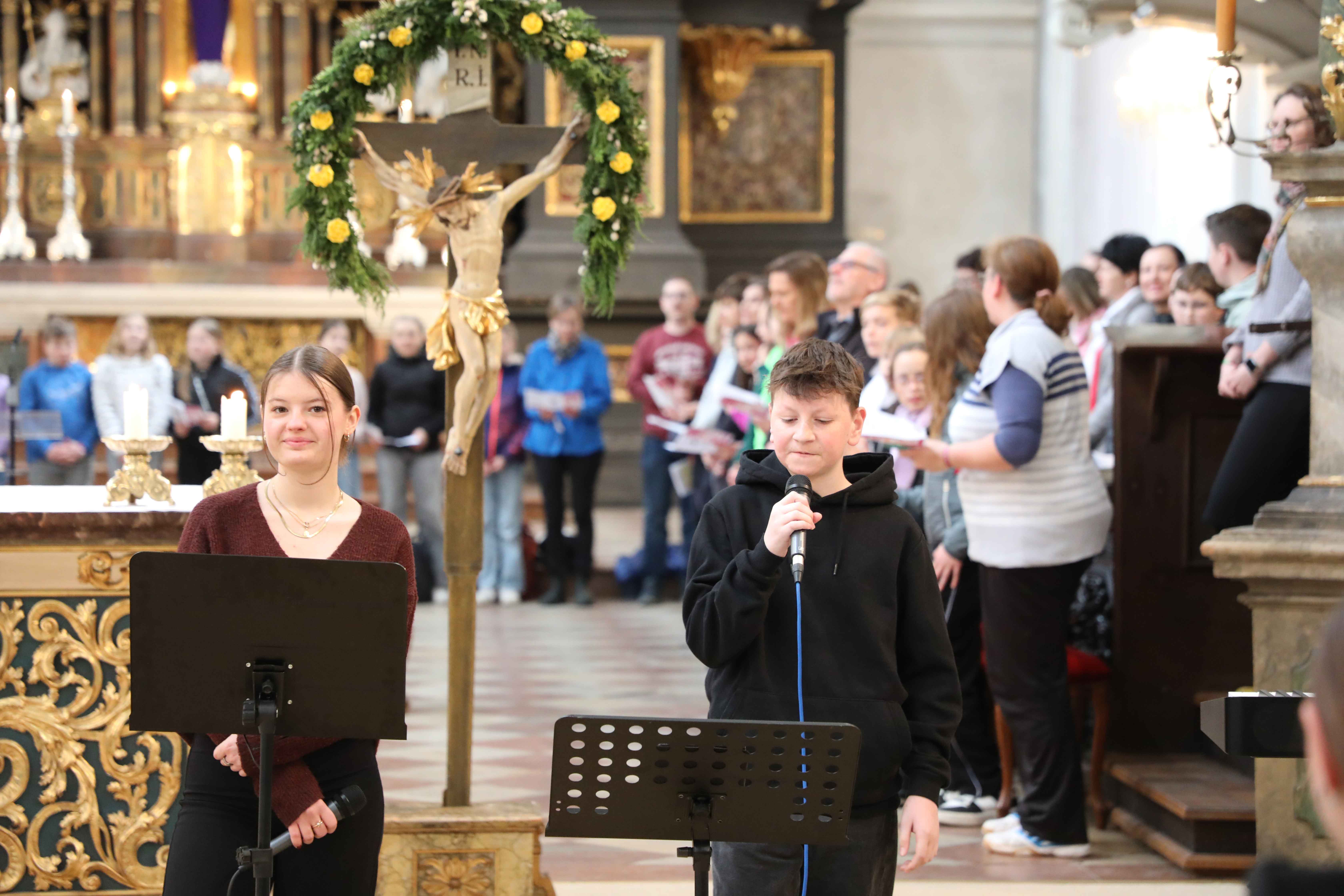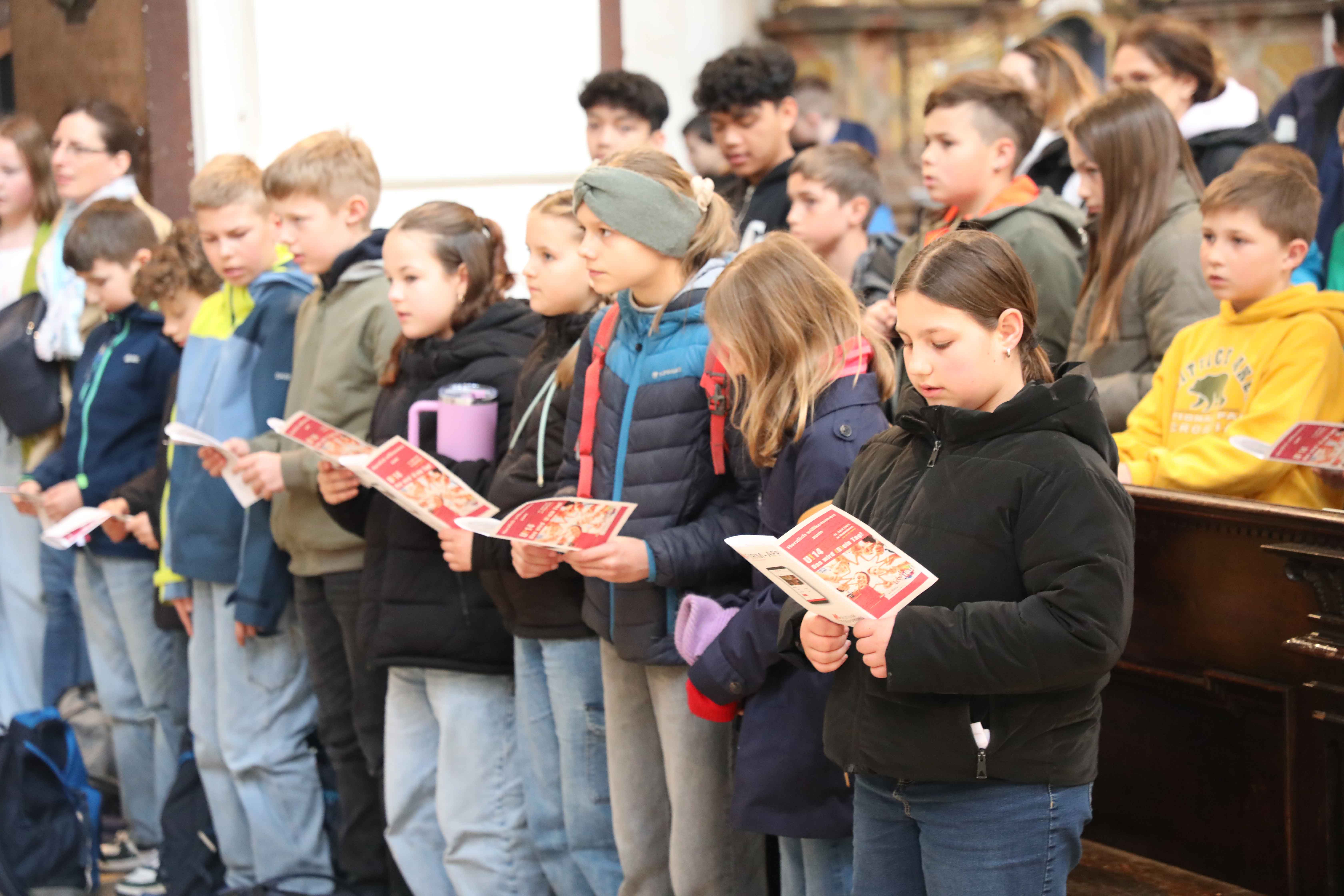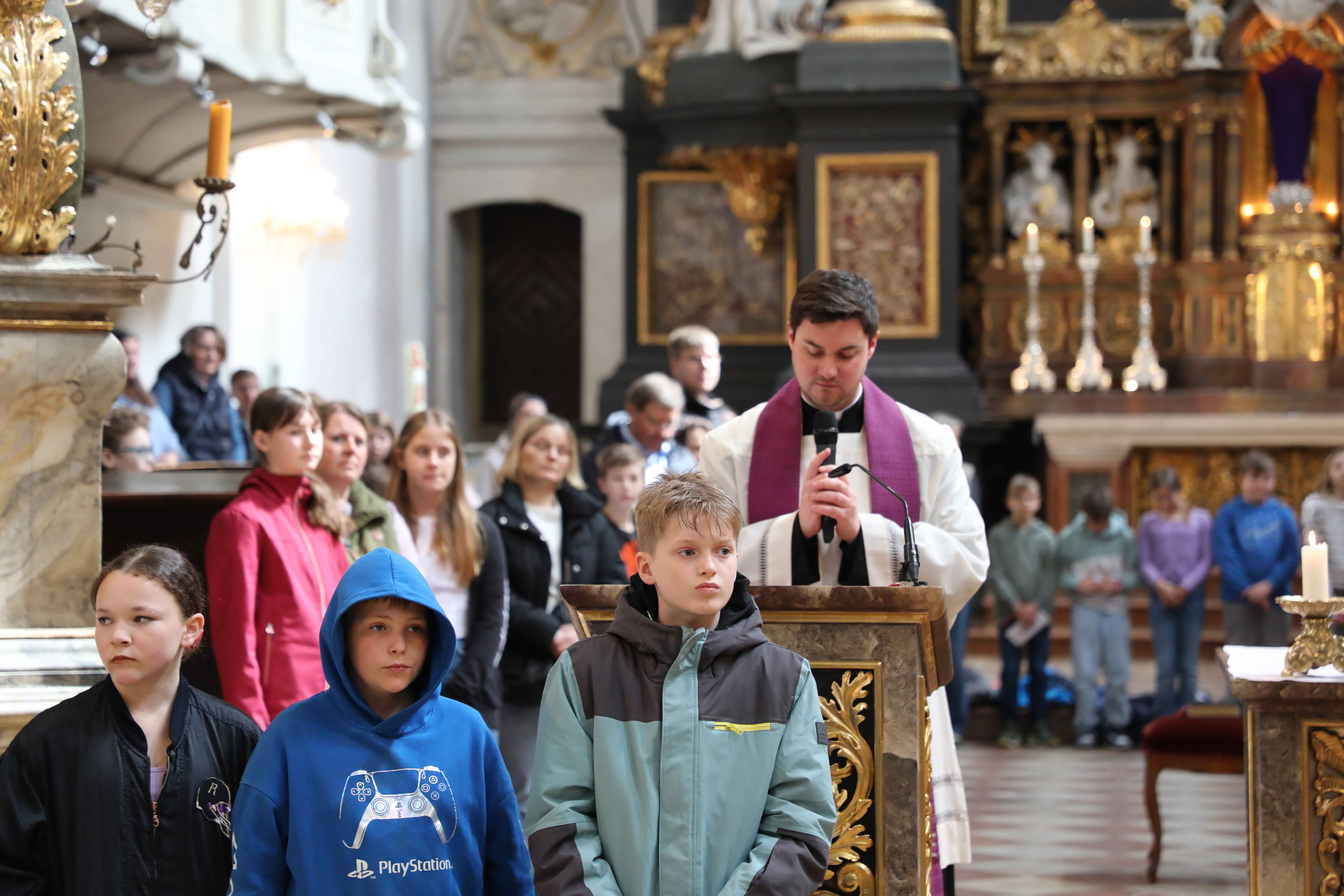 „Schön, eine Kirche gefüllt mit jungen Christinnen und Christen zu sehen“, so begrüßte Bischof Rudolf die Kinder und Jugendlichen beim U14-Tag des Bischöflichen Jugendamtes 2025. Die Basilika Sankt Emmeram in Regensburg war bis auf den letzten Platz gefüllt. 700 Firmlinge kamen am Montag in der Karwoche aus allen Ecken des Bistums nach Regensburg, um gemeinsam den Firmvorbereitungstag „U14“ zu verbringen. Begleitet wurden die Firmgruppen von rund 150 Betreuerinnen und Betreuern.