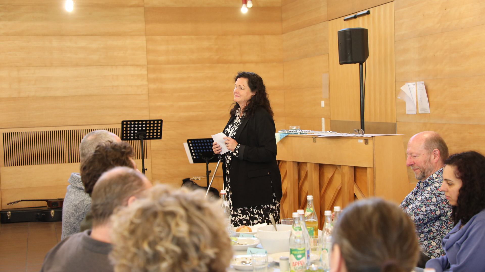 Nach der Schulhausführung tauschten sich Lehrerkollegium und Bischof Rudolf aus. Vorgestellt wurde unter anderem die hauseigene Bibliothek. Bibliothekarin Eva Kraus erklärte, dass die Bibliothek ursprünglich mit 24 Kästen und rund 3.000 Büchern startete. Gewachsen ist die Sammlung auf 7.100 Bücher, dank der Schulstiftung, den Eltern, Kollegen und dem Förderverein. In der Bibliothek stünden nicht nur pädagogisch wertvolle Bücher, sondern auch solche zur Verfügung, die derzeit bei den Kindern im Trend liegen. 9.000 bis 10.000 Ausleihen verzeichnet die Bibliothek pro Jahr. Ein Buch erweitert heuer die Sammlung – Bischof Rudolf schenkte der Schule sein Buch „Krippenschauen. Eine kleine Hinführung zum Christentum“. Dem Kollegium dankte er herzlich für ihre Arbeit und betonte, dass Lehrerinnen und Lehrer das wichtigste Kapital jeder Schule seien. Er sei sehr stolz auf die Schule und wünsche ihr noch viele weitere erfolgreiche Jahre. Auch die Lehrkräfte erhielten von ihm sein neues Krippenbuch.