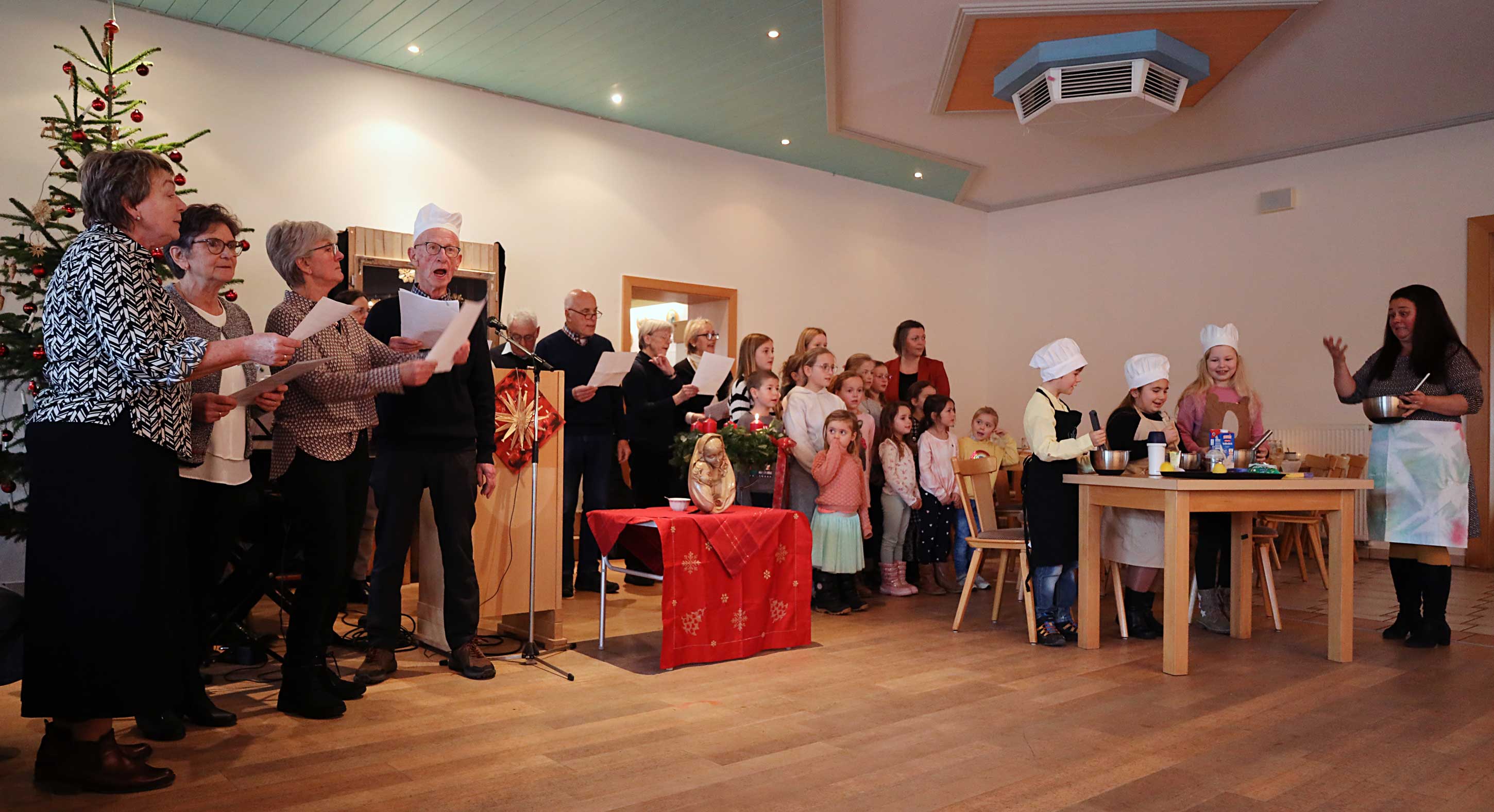 Am Vormittag hatte Bischof Dr. Rudolf Voderholzer ein festliches Pontifikalamt in der reich geschmückten Otteringer Pfarrkirche gefeiert; am Nachmittag besuchte er in Lengthal eine Adventsfeier, die die dortige Gemeinde für die Senioren ausgerichtet hatte. Dabei zeigte sich der Regensburger Oberhirte als aufmerksamer Zuhörer und tiefsinniger Katechet, der das weltliche Backwerk theologisch zu deuten wusste und zugleich eine Lanze für das „echte Leben“ brach.