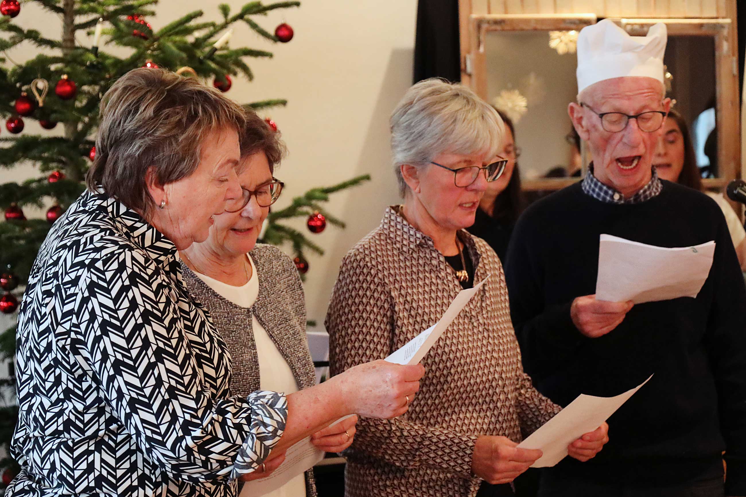 Höhepunkt des unterhaltsamen Teils war das Singspiel vom „Nürnberger Lebkuchenmann“. Die Geschichte handelte von einem Lebkuchen, der, kaum aus dem Ofen, Reißaus nimmt, weil er nicht gegessen werden will. Hans Hobmeier verkörperte mit viel Witz und bayerischer Mundart den verzweifelten Bäcker, der seinem davongelaufenen Teigwerk hinterherjagt. Als Erzählerin führte Franziska Meindl souverän durch die Handlung, während Irmgard Roglmeier in der Rolle der „Waldfrau“ dem verängstigten Lebkuchenmann im Wald begegnete. Das Stück, gemeinsam aufgeführt von Kindern und Erwachsenen, trug eine tiefe Botschaft in sich, die Bischof Rudolf sichtlich berührte: Der Lebkuchenmann erkennt am Ende, dass sein Dasein erst dann einen Sinn hat, wenn er anderen eine Freude bereitet – selbst wenn das bedeutet, verspeist zu werden. Ein schönes Bild für die christliche Hingabe, das die Laiendarsteller mit viel Herzblut inszeniert hatten.
