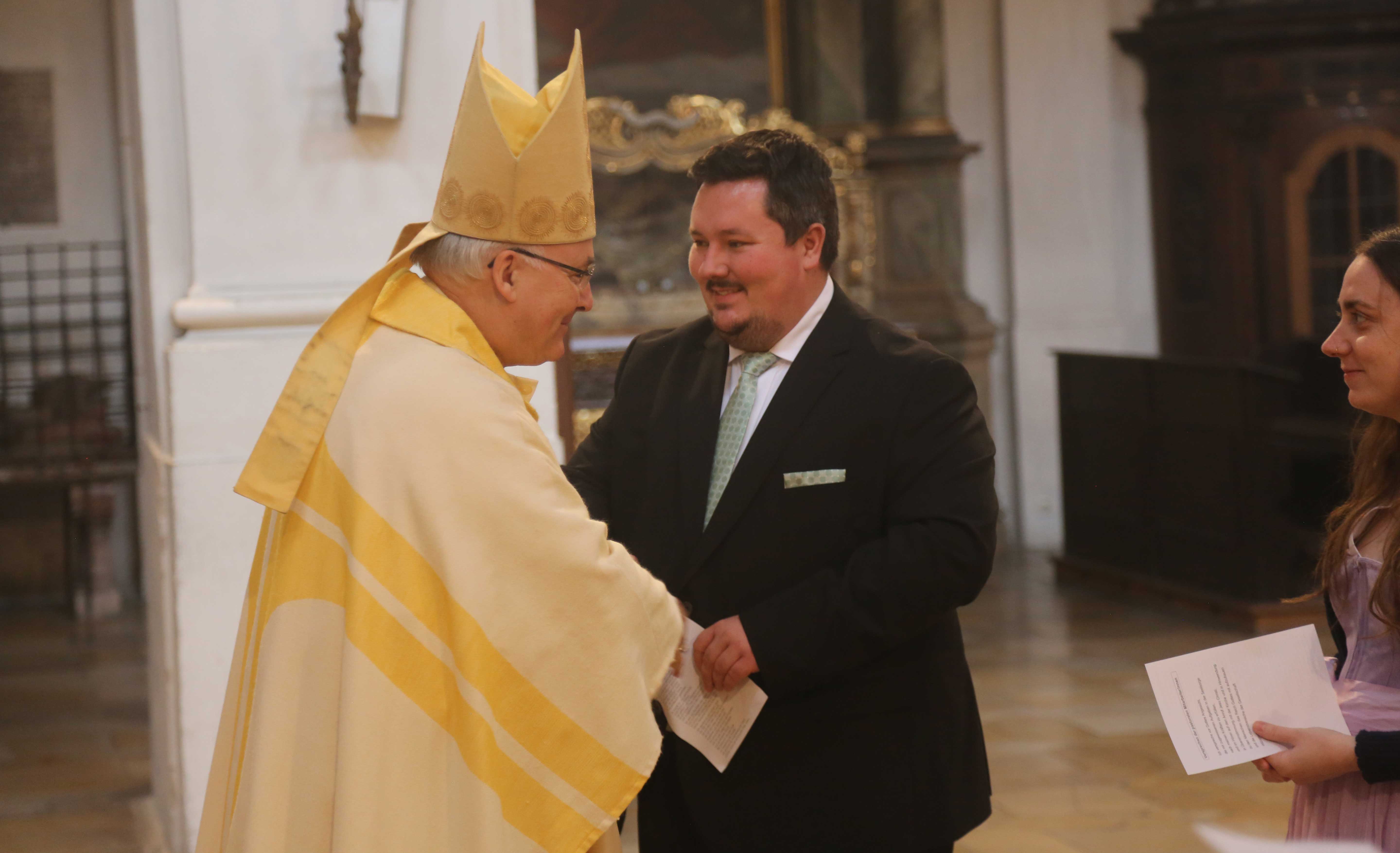 Im Anschluss an den Pontifikalgottesdienst erhielten die vier neuen pastoralen Mitarbeiter im benachbarten Emmerams-Forum, dem ehemaligen Pfarr- und Mesnerhaus der Pfarrei St. Emmeram, die Ernennungsurkunden. Diese Feierlichkeit war auch der Ort des Dankens für die vielen Unterstützer, die in der Ausbildung, im Praxiseinsatz in den Pfarreien und im Gebet Katharina Späth, Tobias Krenn, Sebastian Göttl und Peter Lehner begleitet haben.