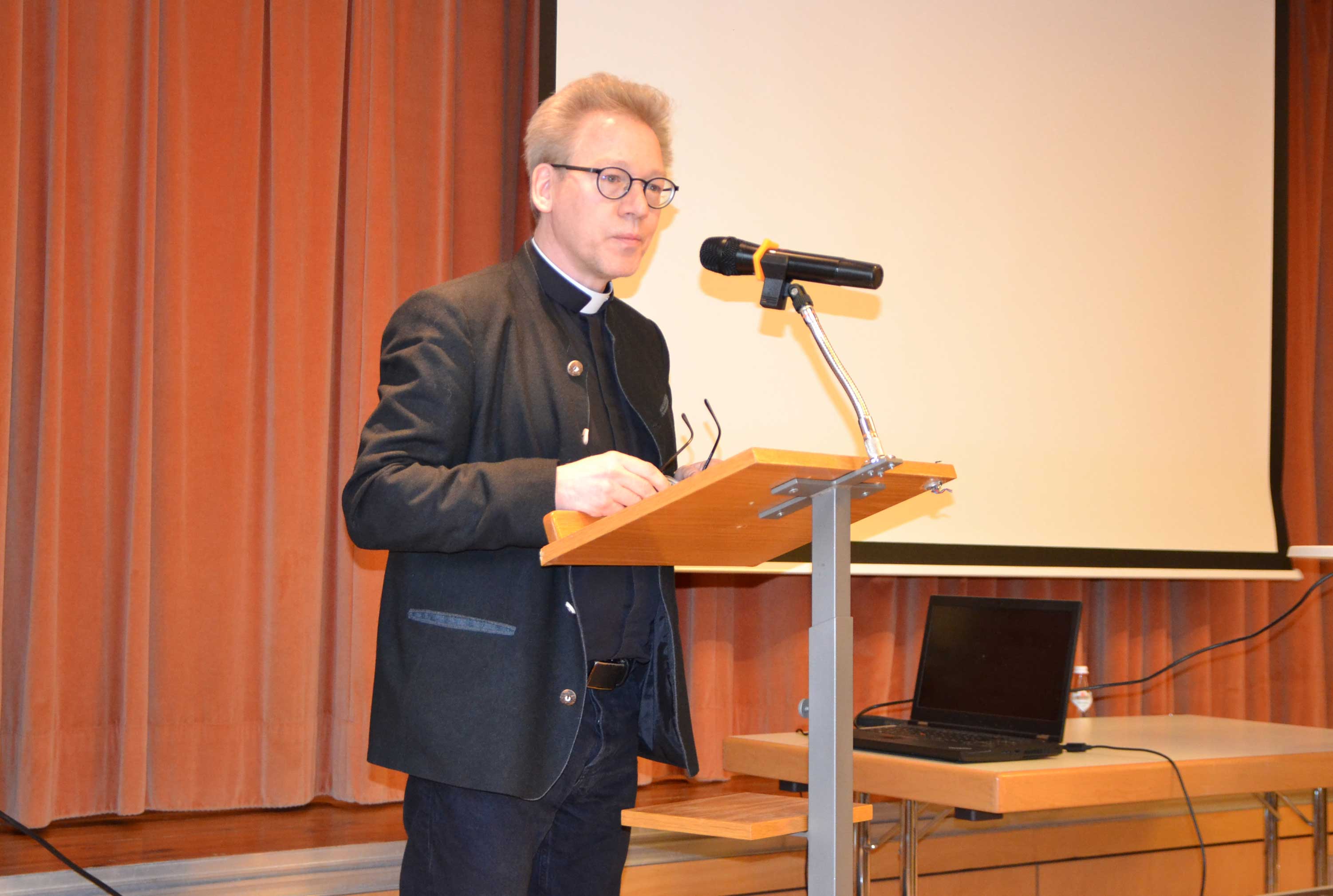 Im Anschluss an den Gottesdienst begrüßte Josef Kratschmann, Leiter der Fachstelle Seniorenpastoral, die Teilnehmer im Pfarrheim von Neutraubling. Neben Bischof Rudolf waren auch Domvikar Dr. Christian Schulz, Leiter der Abteilung Erwachsenenpastoral, sowie Thomas Albertin von der KEB Regensburg Land als Mitveranstalter anwesend. Als Gastredner des Tages referierte Dr. Andreas Krafft von der Universität St. Gallen. Josef Kratschmann bezog sich in seiner Begrüßung auf das Leitwort des Heiligen Jahres „Pilger der Hoffnung“ und betonte die Bedeutung dieser Botschaft für die Pastoralarbeit mit Senioren. Thomas Albertin hob die entscheidende Rolle der Ehrenamtlichen hervor, die für die Seniorenarbeit als Dreh- und Angelpunkt fungieren.