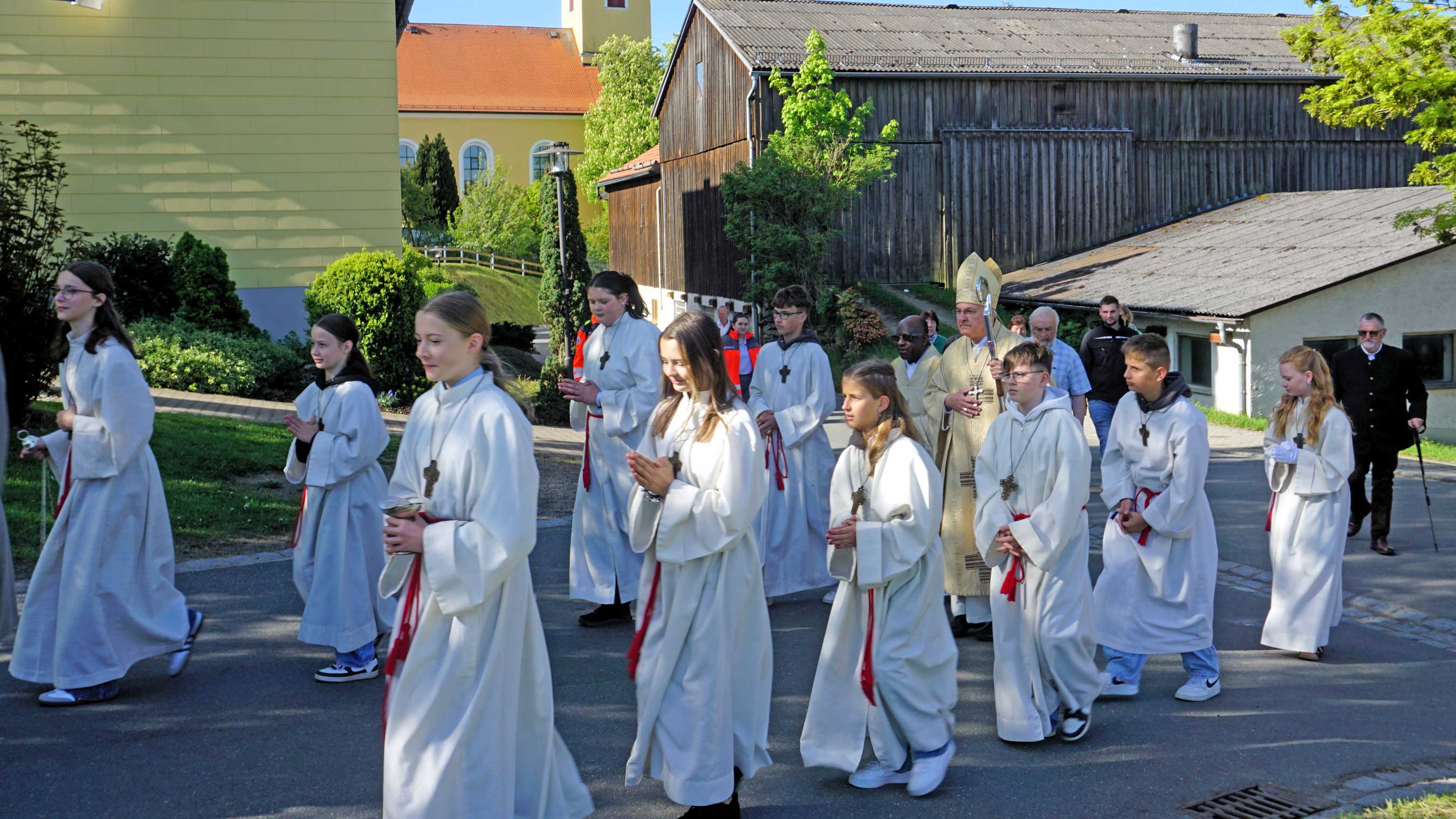 „Im heutigen Gottesdienst gibt es eine Menge zu feiern“, so leitete Diözesanbischof Dr. Rudolf Voderholzer seine Predigt beim Festgottesdienst ein. „Wir feiern den vierten Sonntag in der Osterzeit, den die Kirche als Sonntag vom Guten Hirten begeht, dann den Muttertag und schließlich den 150. Geburtstag der Freiwilligen Feuerwehr Griesbach.“