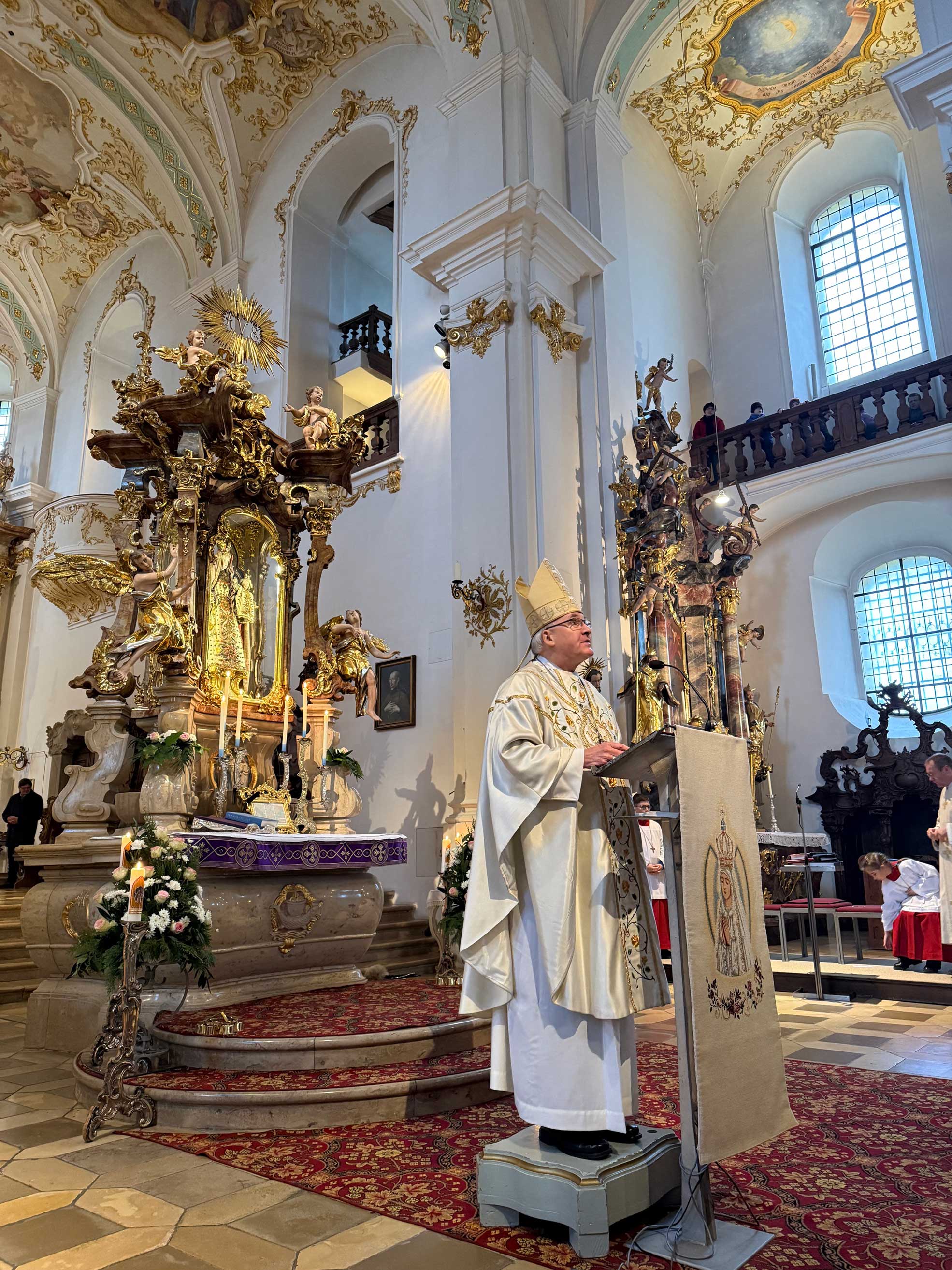 Am 13. Dezember 2025 zelebrierte Bischof Dr. Rudolf Voderholzer ein Pontifikalamt zum letzten Fatima-Tag des Jahres in der Wallfahrtsbasilika Maria Brünnlein bei Wemding in der Diözese Eichstätt. In seiner Predigt legte der Bischof einen besonderen Fokus auf das Thema der christlichen Hoffnung, die für das Leben der Gläubigen von zentraler Bedeutung ist. Mit Bischof Voderholzer feierten am Altar unter anderem Wallfahrtrektor Norbert Traub.