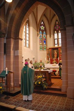In seiner Predigt blickte Bischof Rudolf auf das Sonntagsevangelium nach Lukas (Lk 21,5-19), in dem zweimal vom Tempel die Rede war. Zum einen sprach Jesus da vom Tempel in Jerusalem, dem seine große Wertschätzung galt. Zum anderen ging es im Evangelium aber um den Tempel aus lebendigen Steinen, dem Tempel des Heiligen Geistes, dem wir alle durch Taufe und Firmung angehören. Die architektonische Kirche, so Bischof Rudolf, die Ort der Gegenwart Gottes und Versammlungsort der lebendigen Kirche sei, könne durch Verwitterung und andere äußere Umstände in Mitleidenschaft gezogen werden. Der lebendigen Kirche aber, würde das Auftreten falscher Propheten, der aufkommende Widerspruch oder die Verfolgung der Gläubigen zusetzen. Wenn auch in unseren Breiten, so führte der Bischof aus, diese Bedrohungen nicht so groß seien wie anderenorts, so sei doch Wachsamkeit geboten. Oft gebe es heutzutage eine „Glaubensspaltung quer durch die Konfessionen“, wo z.B. die Gottessohnschaft Jesu geleugnet würde, diese Theologen seien dann die falschen Propheten, denen man nicht nachlaufen solle. Der Widerspruch, den Christen erfahren würden, dürfe nicht zu dem Grundsatz verleiten: „Viel Feind, viel Ehr“. Katholiken definierten sich in der säkularen Welt nicht durch den bloßen Protest. Bei uns gebe es heute keine offene Christenverfolgung, so wie das in den ersten Jahrhunderten der Fall war, in jener Zeit, als auch die Kirchenpatronin Katharina von Alexandrien ihren Glauben mit ihrem Leben bezeugte. Aber gerade heute am Volkstrauertag, so führte Bischof Rudolf aus, sollte man in Regensburg wieder im besonderen des Dompredigers Johann Maier gedenken, der 1945 kurz vor Kriegsende durch sein Bekenntnis für den Frieden den gewaltsamen Tod fand. In Anbetracht der großen Christenverfolgungen in Syrien, dem Südsudan oder auch in China, solle man die kleinen Herausforderungen des Alltags nicht überbewerten und dankbar sein, dass wir frei unseren Glauben bekennen könnten. Bischof Rudolf lud die Gläubigen auch ein, dem Aufruf von Papst Franziskus zu folgen, zu denen zu gehen, die der Meinung wären, den Glauben nicht zu benötigen.