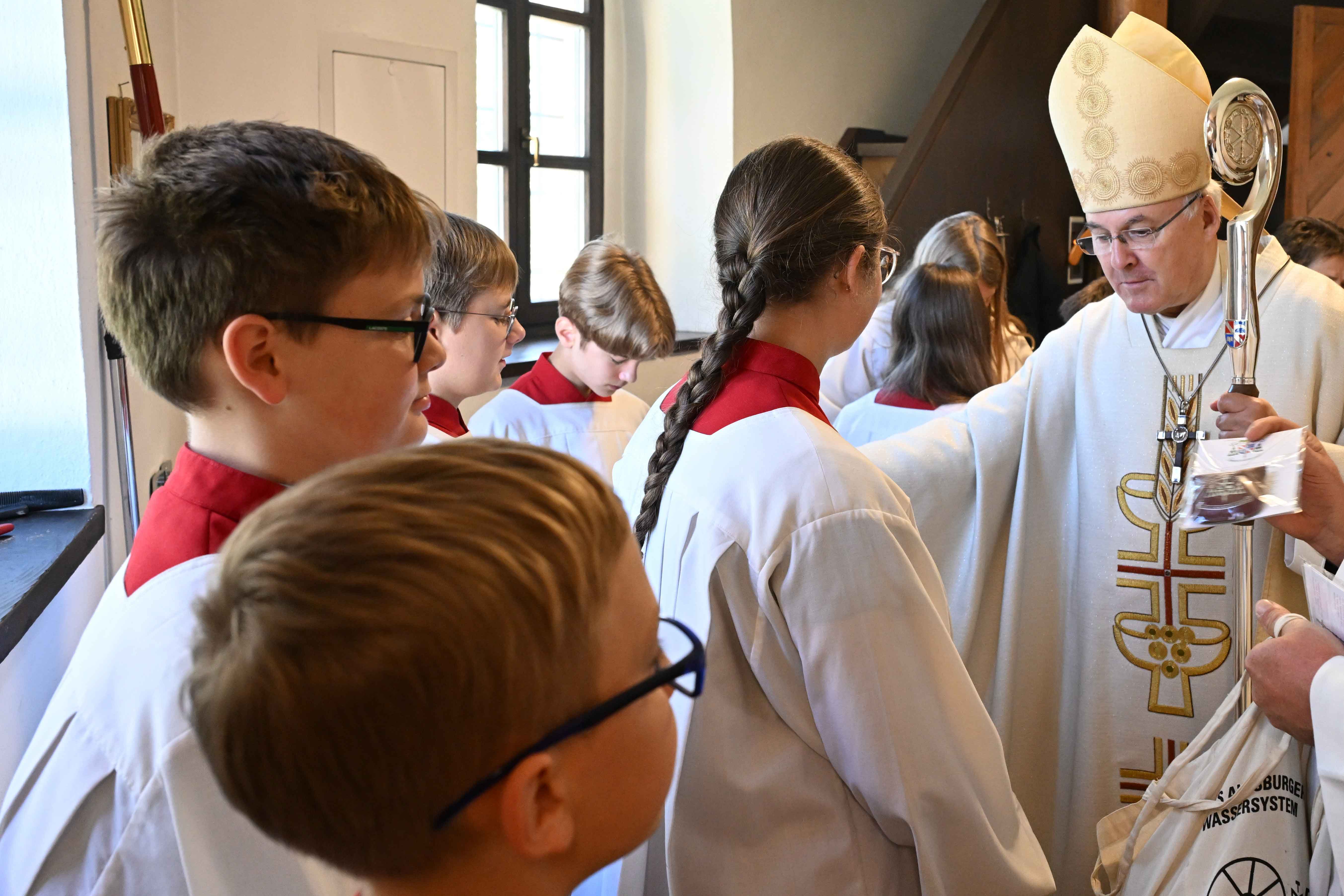 „1250 Jahre sind eine stattliche Zeit“, betonte Bischof Dr. Voderholzer und verwies darauf, dass die nächsten Jubiläen in 25 oder 50 Jahren nicht mehr von allen Anwesenden erlebt werden. Umso wichtiger sei es, dass die Kinder und Jugendlichen von heute die Verantwortung übernehmen und das Erbe fortführen: „Sie werden die nächste Feier gestalten, bei der die große Revolution der Liebe im Mittelpunkt steht.“