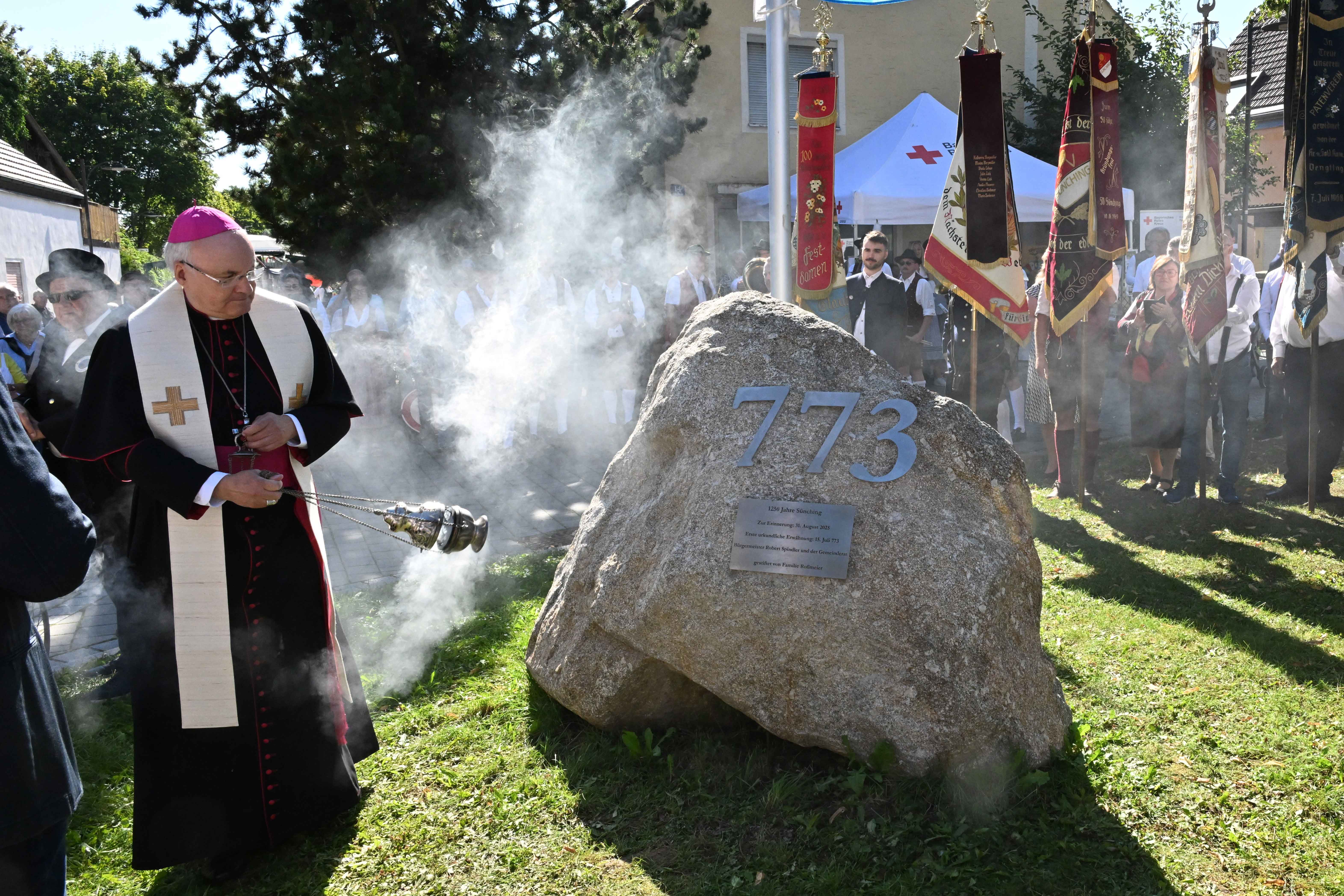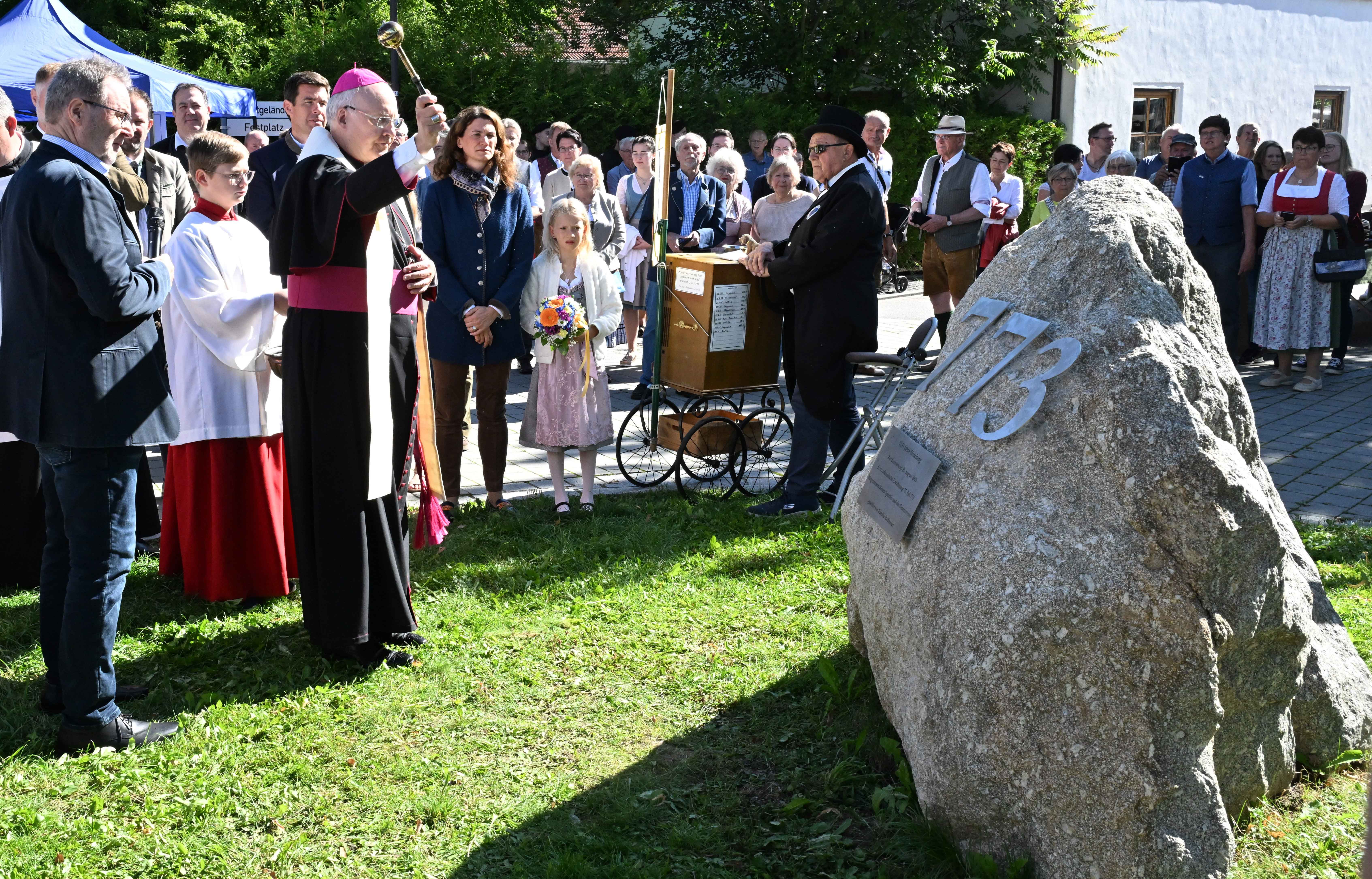 Nach der Messe segnete Bischof Rudolf einen neu aufgestellten Gedenkstein von drei Tonnen Gewicht, der dauerhaft an die 1250-Jahrfeier erinnern wird.