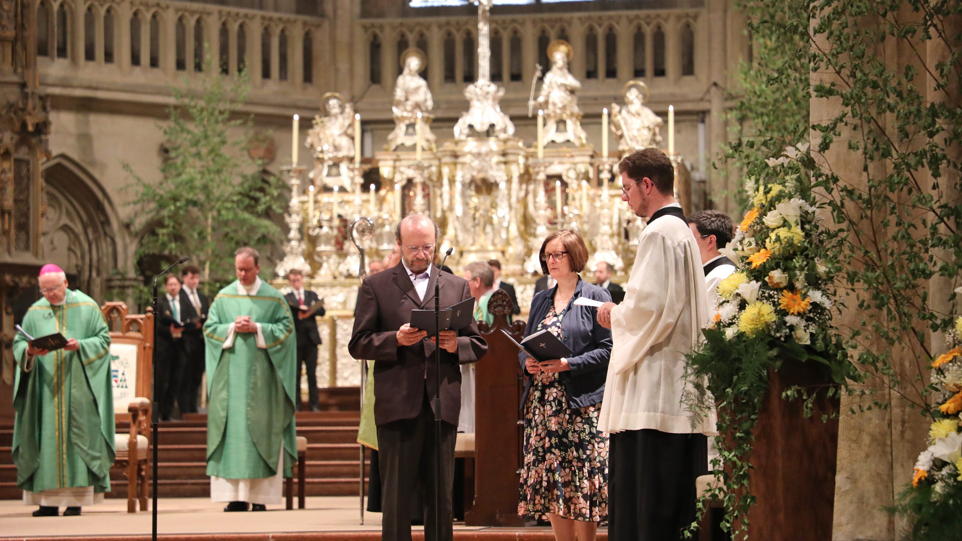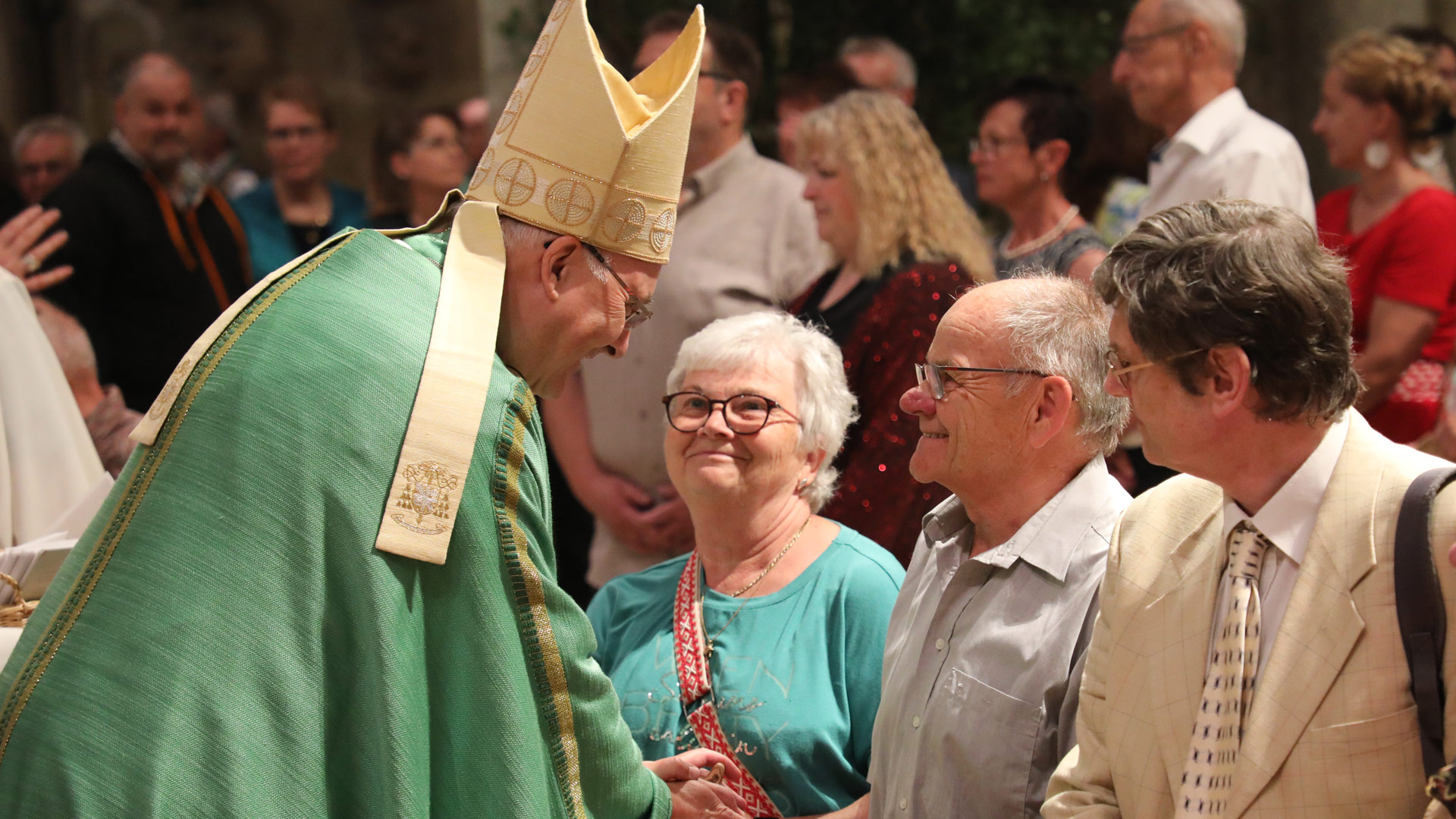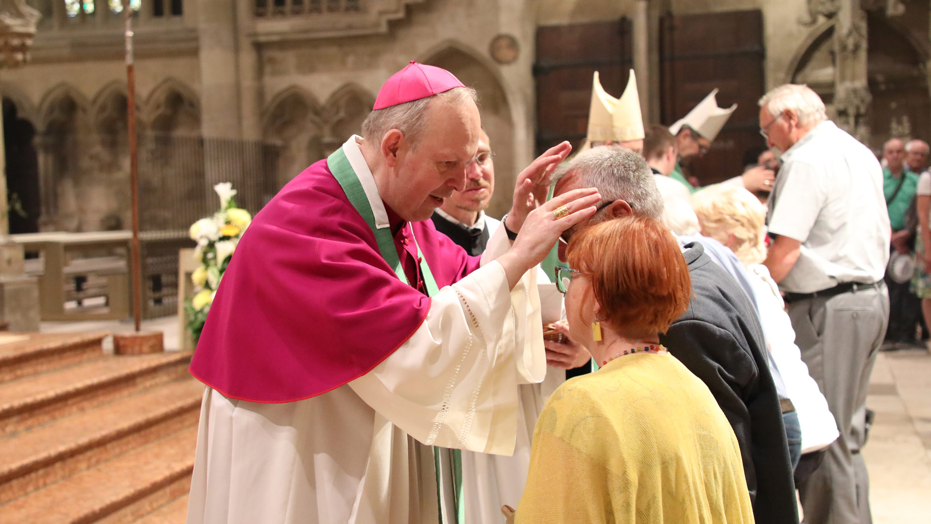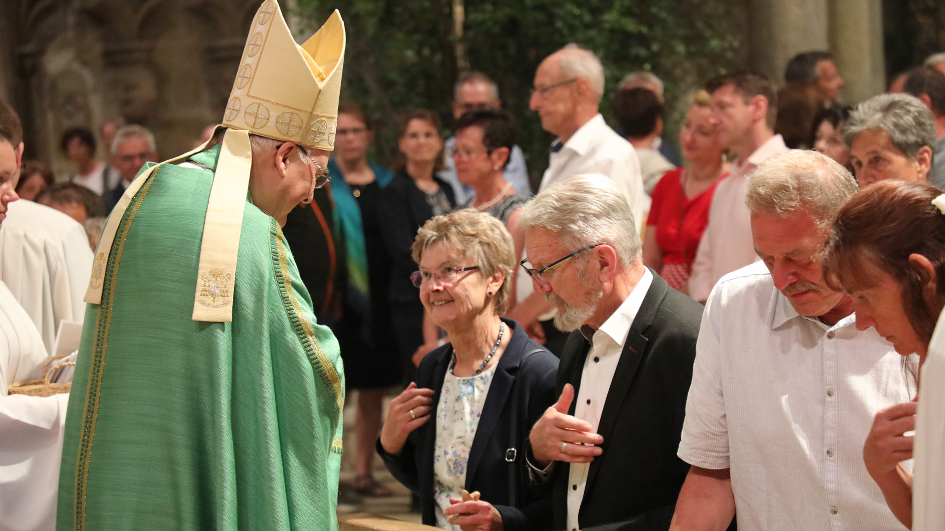 „Ich danke Ihnen allen“, so der Bischof abschließend, für das ermutigende Zeichen, das Sie mit Ihrer ganzen Existenz geben – in der Herzmitte unserer Kirche. „Danke, dass Sie bereit sind, dieses Zeugnis des gemeinsamen Weges auch in der Öffentlichkeit der Kirche zu geben. Und dass sie heute aus allen Regionen unseres Bistums in unseren Dom gekommen sind. Nicht nur für viele junge Menschen ist ihr Zeugnis eine Ermutigung und eine Orientierung, eine Ermutigung, es auch zu wagen. Weil es eben doch auch gelingen kann und vielleicht öfter gelingt, als eine manchmal zynische Öffentlichkeit es wahrhaben will.“