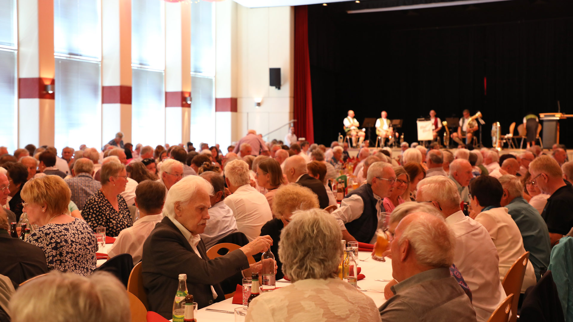 Im Anschluss an die Feierlichkeiten waren die Ehejubilare zum Essen ins Kolpinghaus eingeladen. Am Eingangsbereich fertigten Mitarbeiter des BDKJ von den Paaren ein Erinnerungsfoto an. Bei Schweinebraten, Kaffee und Kuchen loste Bischof Rudolf ein Ehepaar aus, dass einen Gutschein geschenkt bekam, um einige Tage im „Kolping Haus Bayerischer Wald“ in Lam zu verbringen. Das Bläserensemble „Bloß Blech“ gestaltete den Mittag musikalisch.