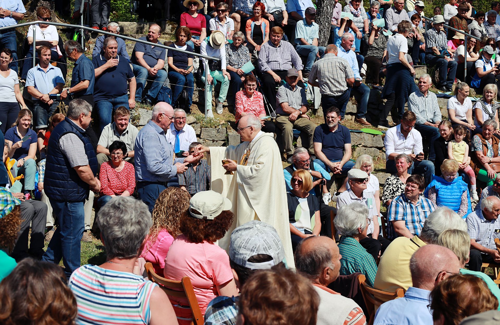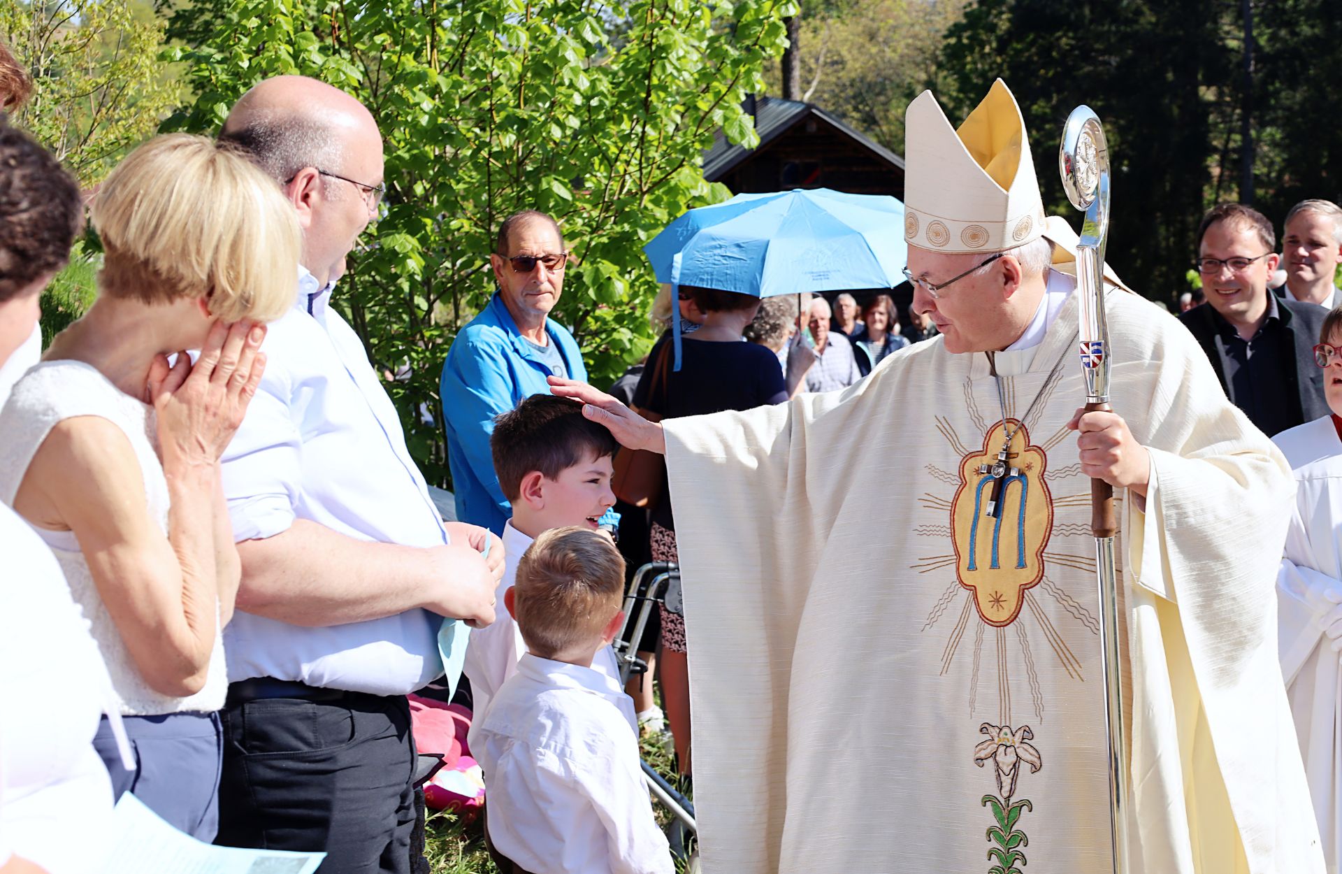 In seiner Festpredigt zeigte sich Bischof Voderholzer angesichts der großen Teilnahme tief beeindruckt. Er dankte der Marianischen Männerkongregation für ihre Sorge um die Kapelle, die vor 75 Jahren erbaut wurde. Dank des Schutzes der Gottesmutter Maria hatte diese sogar einen Tornado überstanden.