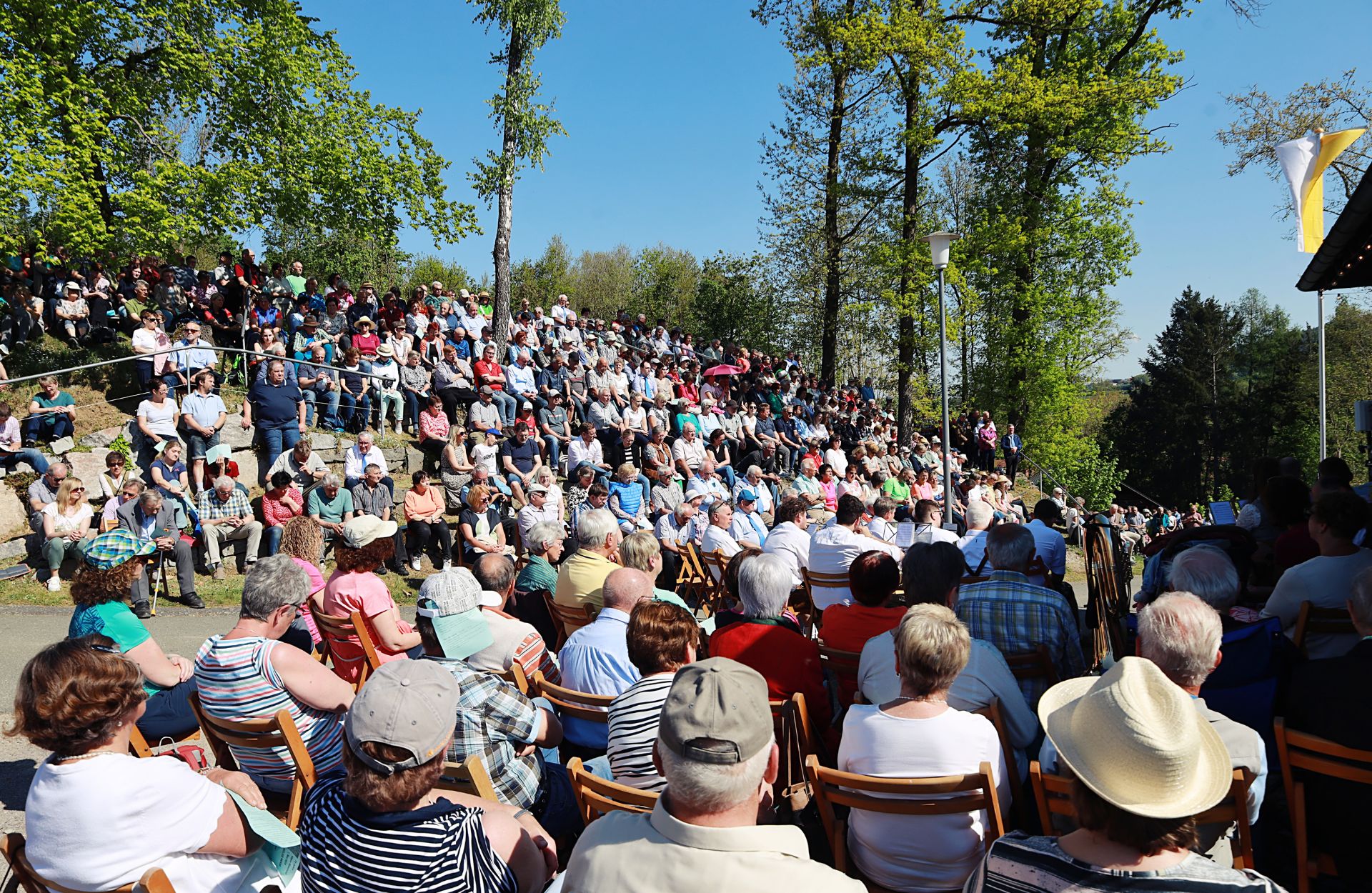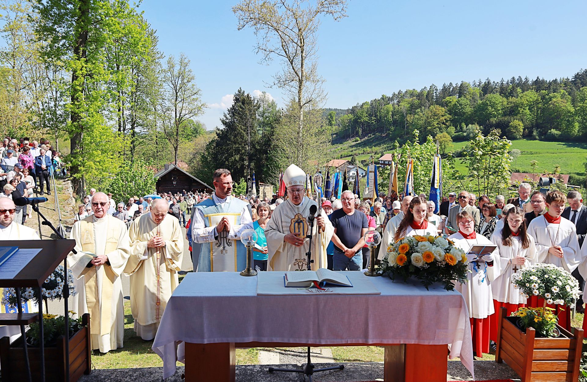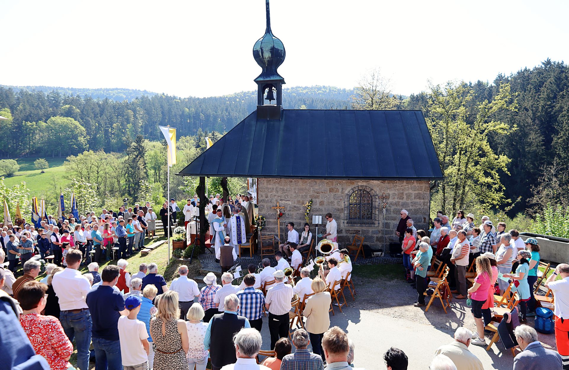 Strahlender Sonnenschein begleitete am 1. Mai, dem traditionellen Festtag der Patrona Bavariae, die Feierlichkeiten zum 75. Jubiläum der Wallfahrtskapelle Maria Rosenöd. Über 1.000 Gläubige versammelten sich in der malerischen Umgebung der Kapelle, um dieses besondere Jubiläum zu begehen. Die Marianische Männerkongregation Cham, die sich seit Jahren mit Hingabe um die Kapelle kümmert, hatte die Feier ausgerichtet.