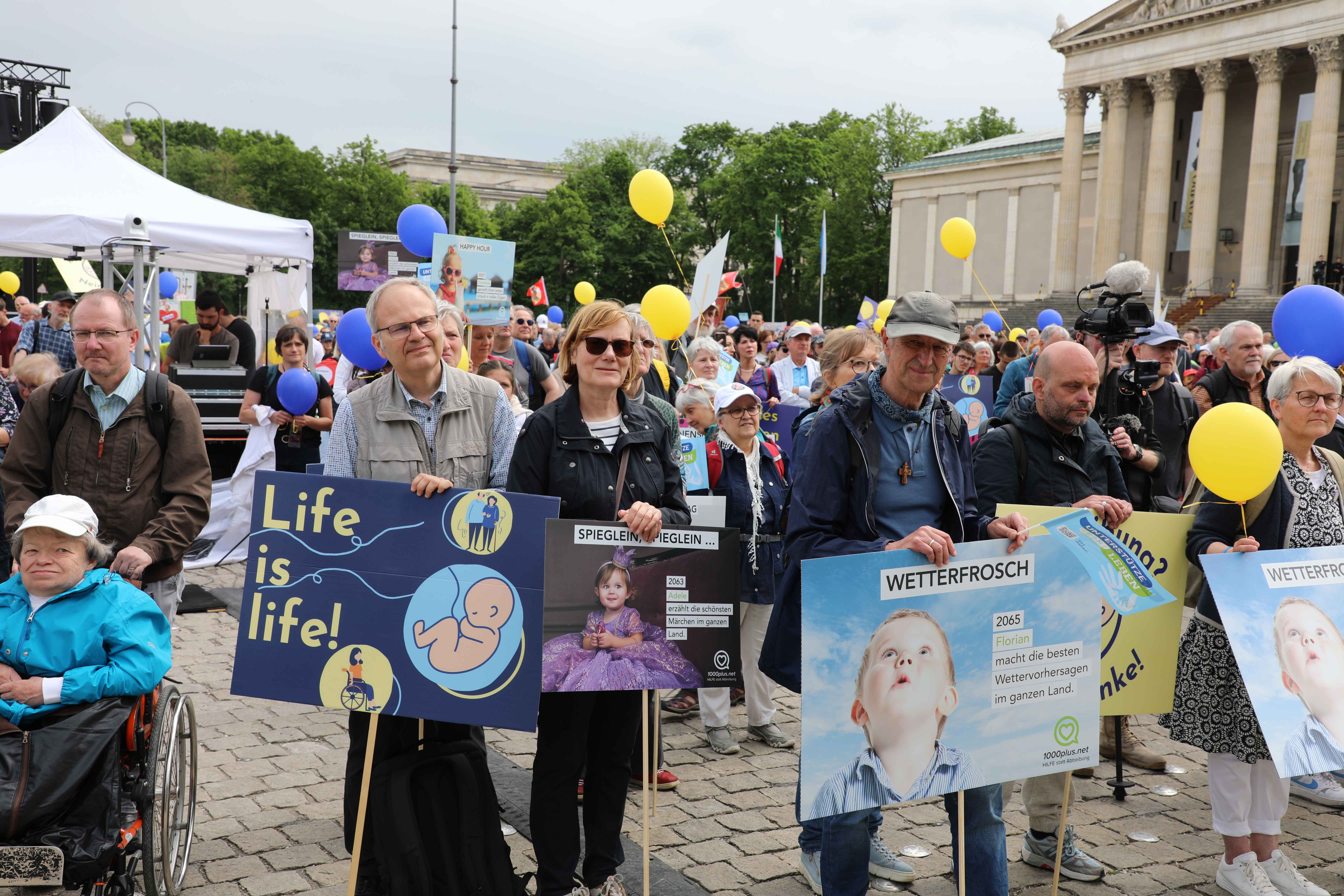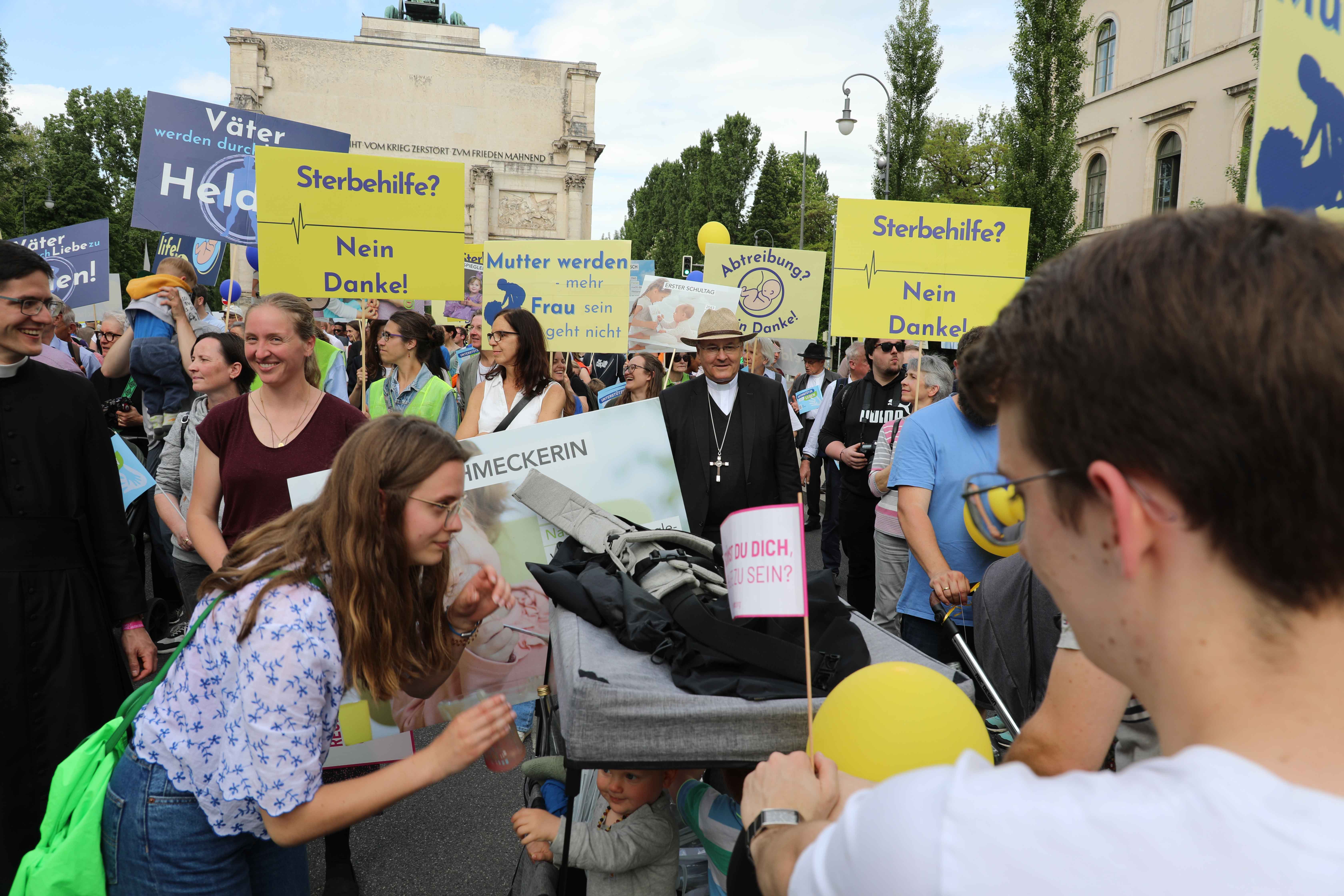 Mit Transparenten und Luftballons versammelten sich Tausende von Demonstranten in München, um für das Leben zu demonstrieren. Der Regensburger Bischof Dr. Voderholzer spendete den Segen am Ende der Veranstaltung. Der Kölner Erzbischof, Rainer Maria Kardinal Woelki, der Passauer Bischof Dr. Stefan Oster SDB sowie der Eichstätter Bischof Gregor Maria Hanke OSB sandten Grußworte nach München.