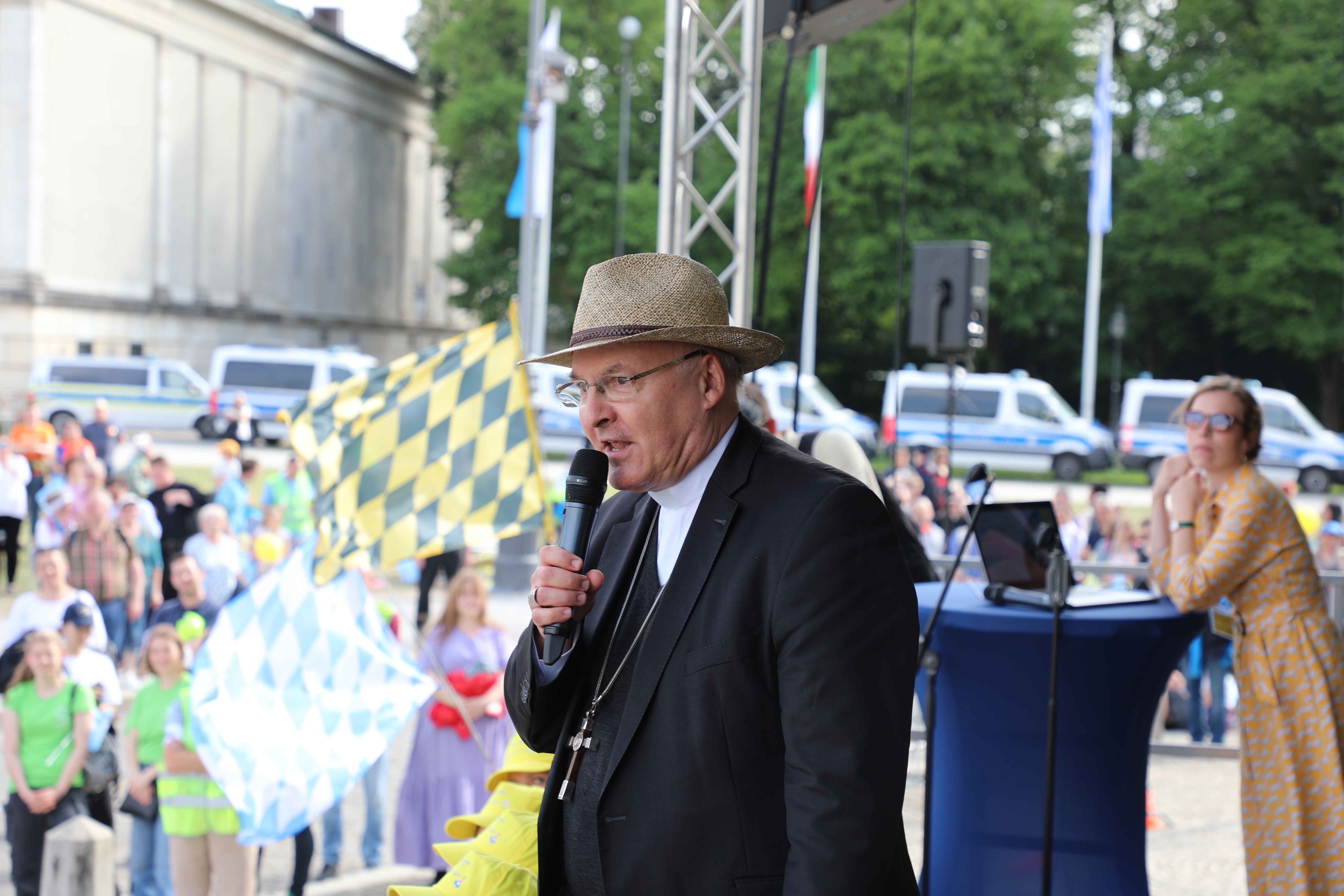 Der Regensburger Bischof Dr. Rudolf Voderholzer, der in München geboren und aufgewachsen ist, kennt die Orte, die der Demonstrationszug streifte, aus seiner Kindheit. Nach der vier Kilometer langen Wegstrecke spendete er den Abschlusssegen. Davor richtete er seinen ausdrücklichen Dank an die Organisatoren, die vielen Teilnehmer und die Polizei.