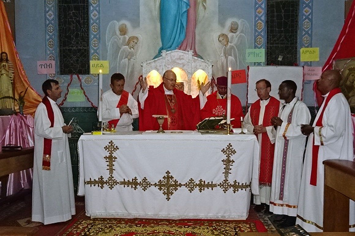 Die beiden Bischöfe kennen sich bereits seit 2018. Damals wurde Äthiopien als Land für den Monat der Weltmission ausgewählt, weswegen zunächst im Juni 2018 Bischof Rudolf mit einer Delegation aus Regensburg und einer Gruppe von missio München das Land besuchte. Im Rahmen der 10-tägigen Reise durch Äthiopien traf der Regensburger Oberhirte auch Bischof Lesanuchristos Matheos Semahun und lernte dessen 2015 errichtete Eparchie Bahir Dar-Dessie kennen. Darüber hinaus verbindet die beiden Diözesen der Selige Pater Liberat Weiß OFM aus Konnersreuth. Dieser fand in Gonder, auf dem Gebiet der Eparchie Bahir Dar-Dessie, am 3. März 1716 den Märtyrertod durch Steinigung. Pater Liberat Weiß wird in der Eparchie verehrt, erzählte Bischof Lesanuchristos Matheos Semahun. In Gonder wurde ein katholisches Krankenhaus nach ihm benannt, das Bischof Rudolf 2018 besuchte. Beim gestrigen Treffen berichtete Bischof Lesanuchristos Matheos Semahun, dass das Krankenhaus gut laufen würde. Allerdings habe er es seit mehreren Jahren aufgrund anhaltender Konflikte nicht besuchen können. Dieses Jahr beabsichtigt er jedoch, das Krankenhaus aufzusuchen. In seinem Land kommen tagtäglich Menschen durch Waffengewalt und Hunger zu Tode, berichtete er. Einer Blindenschule und einer weiteren Schule in seiner Eparchie, die Bischof Rudolf 2018 kennenlernen konnte, ginge es ebenfalls gut. Viele Schule in der Amhara Region hingegen seien aufgrund der anhaltenden Krisensituation geschlossen worden, abgesehen von jenen in Großstädten.