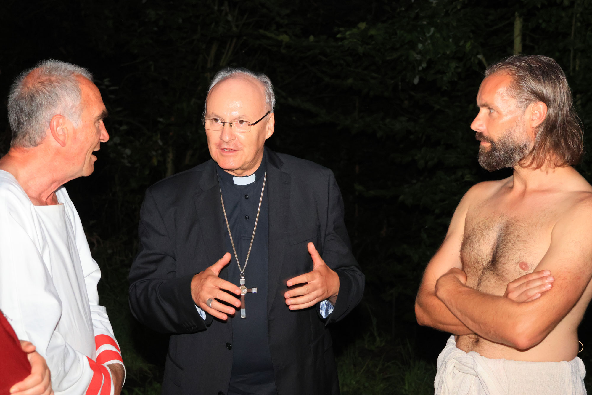 Am vergangenen Wochenende besuchte Bischof Rudolf Voderholzer die Abendvorstellung der Fränkischen Passionsspiele in Sömmersdorf. Unter dem Motto „Eine Geschichte, ein Dorf, eine Leidenschaft“, machen 400 engagierte Sömmersdorfer, im Alter von wenigen Wochen bis 85 Jahren, die Leidensgeschichte Jesu auf der beeindruckenden Freilichtbühne lebendig.