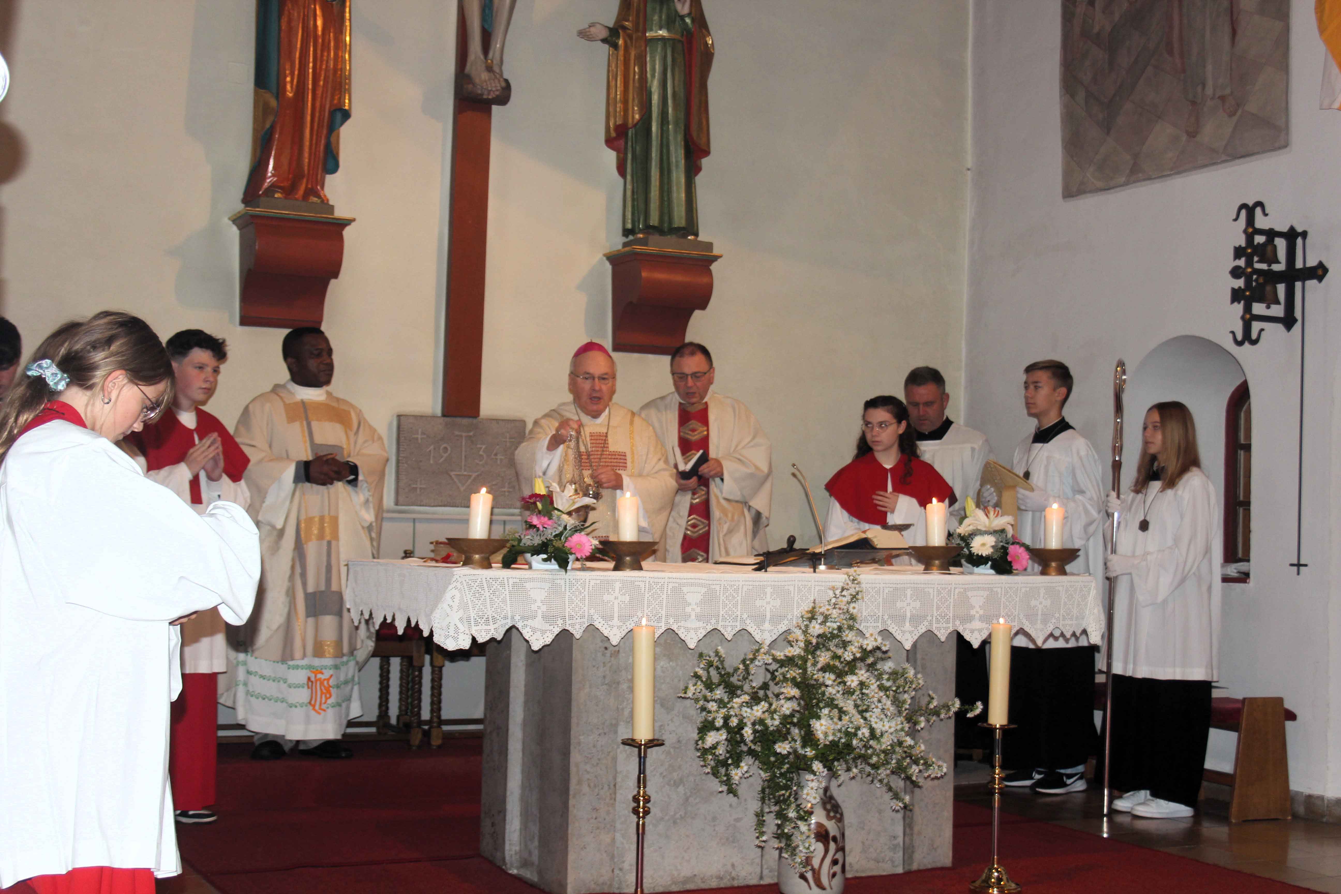 Zum Ende seiner Predigt dankte der Bischof allen, die in der Pfarrei Herz-Jesu in Immenreuth Verantwortung tragen und das kirchliche Leben bereichern – von Pfarrer Markus Bruckner und Pfarrvikar Dr. Linus Chukwudi Nwankwo über die Ministranten und Mesner, bis hin zu den Ehrenamtlichen in den Gremien und allen, die die Liturgie musikalisch gestalten.