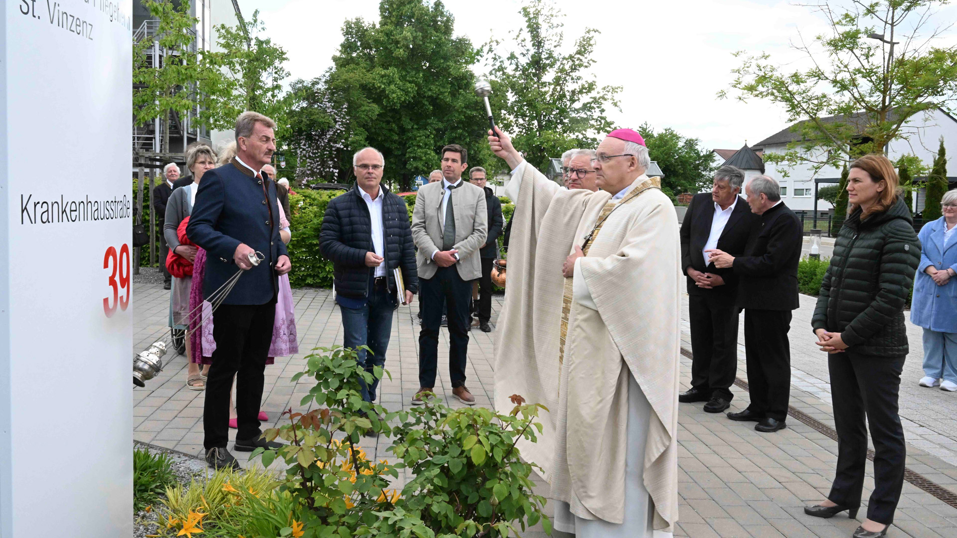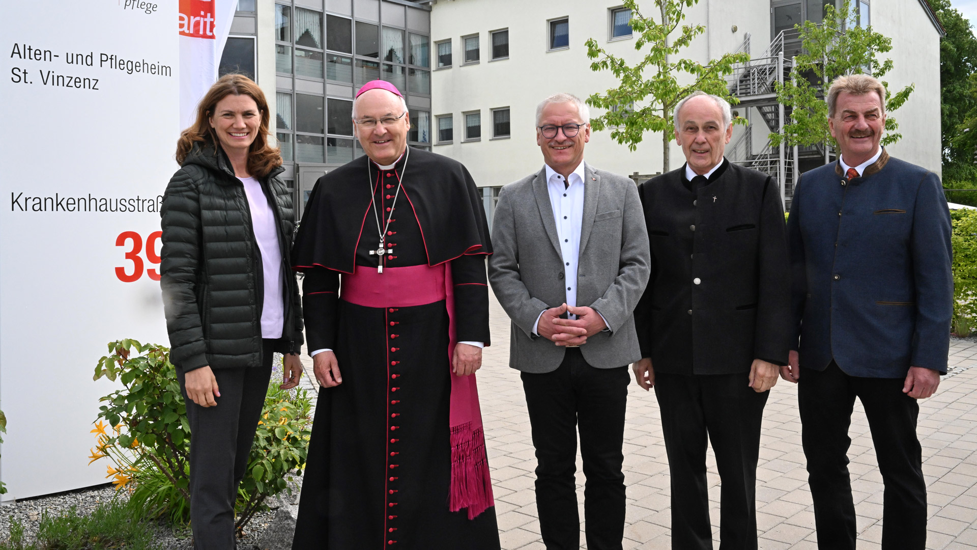 Seit über 40 Jahren betreibt die Caritas das Alten- und Pflegeheim Sünching, das künftig den Namen St. Vinzenz tragen wird. Diözesanbischof Dr. Rudolf Voderholzer zelebrierte aus diesem Anlass gemeinsam mit Diakon und Caritasdirektor Michael Weißmann einen Gottesdienst in der Filialkirche St. Moritz. Zahlreiche Ehrengäste, darunter Prälat Bernhard Piendl und Landrätin Tanja Schweiger, nahmen am Gottesdienst, der feierlichen Enthüllung eines neuen Pylons sowie einer Feierstunde im Festzelt teil.