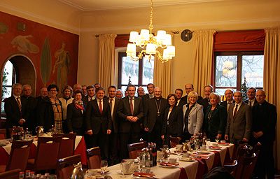 Zum offenen Austausch trafen sich Bischof Rudolf Voderholzer und die Mitglieder der Ordinariatskonferenz mit CSU-Abgeordneten aus Niederbayern und der Oberpfalz. Die Herausforderungen im Zusammenhang mit Asylsuchenden und Flüchtlingen war dabei genauso Thema wie die Erfahrungen mit dem achtjährigen Gymnasium, die Finanzierung kirchlicher Schulen und die Inklusion. Auch der bevorstehende Katholikentag, die öffentliche Diskussion über Ehe und Familie und die jüngsten Vorgänge bei Weltbild wurden besprochen.