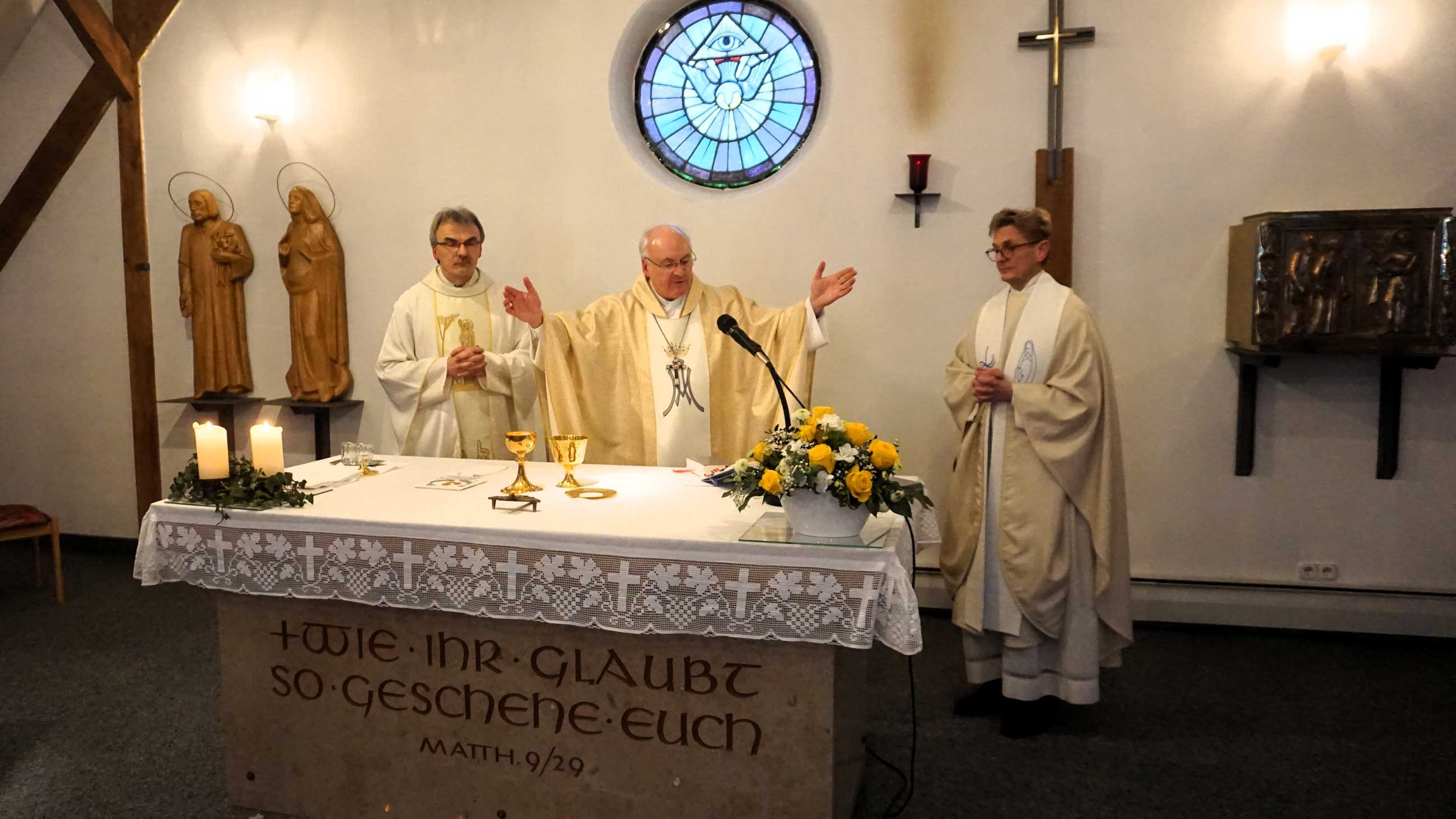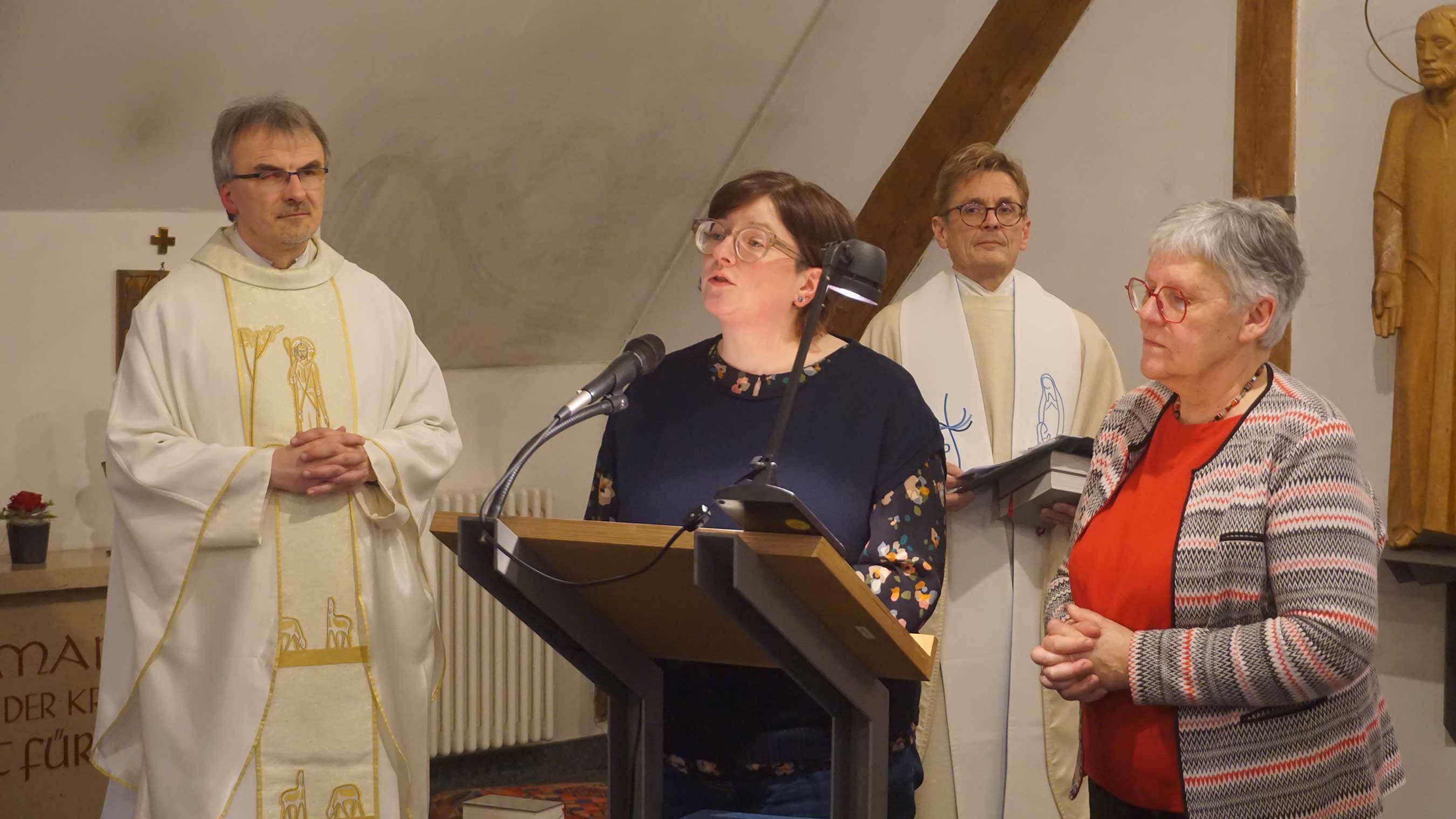 In das Team der Steinwaldklinik fügen sich die beiden Klinikseelsorgerinnen nahtlos ein. Pfarrerin Lisa Keck und Gemeindereferentin Roswitha Heining unterstützen die seelische Gesundung der Patientinnen und Patienten, so dass diese wieder Zutrauen in sich selbst schöpfen können. Gemeinsam trugen sie im Gottesdienst die Fürbitten vor: Die Mitarbeitenden sollen bei allen Herausforderungen und Belastungen immer wieder auch Zeichen der Ermutigung erfahren dürfen. Für alle Kranken beteten sie, dass sie möglichst ganzheitliche Heilung und Linderung erfahren dürfen.