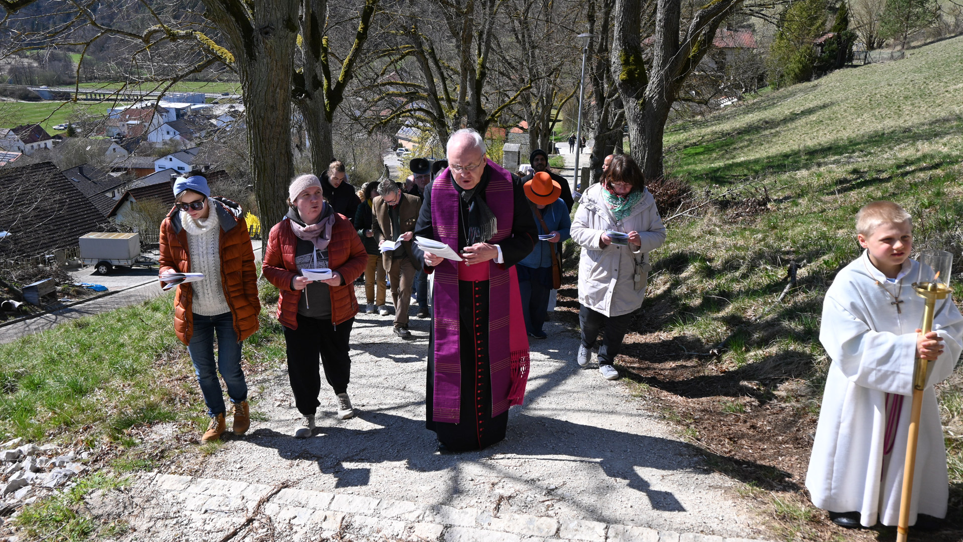 Bischof Rudolf Voderholzer betet den Kreuzweg zum Kalvarienberg in Deuerling