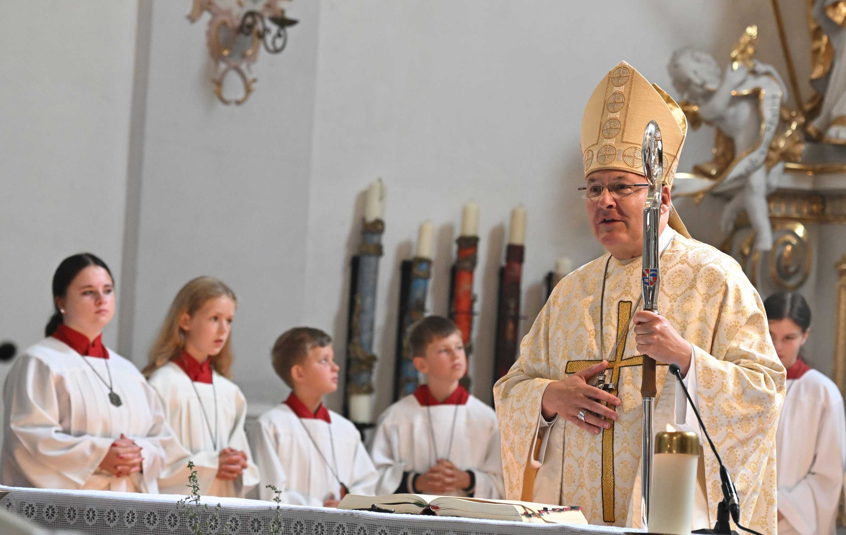 Er warnte vor der Versuchung des immer größeren Habenwollens und verwies auf Konflikte, die etwa bei Erbschaften entstehen können. In Bezug auf das Tagesevangelium vom reichen Kornbauern (Lk 12,13–21) erinnerte der Bischof daran, dass es in der Ewigkeit nicht auf irdischen Besitz ankomme, sondern auf das, was man verschenkt und aus Liebe für andere eingesetzt habe. „Zeit, Nächstenliebe und Leidenschaft – das ist die Währung Gottes.“