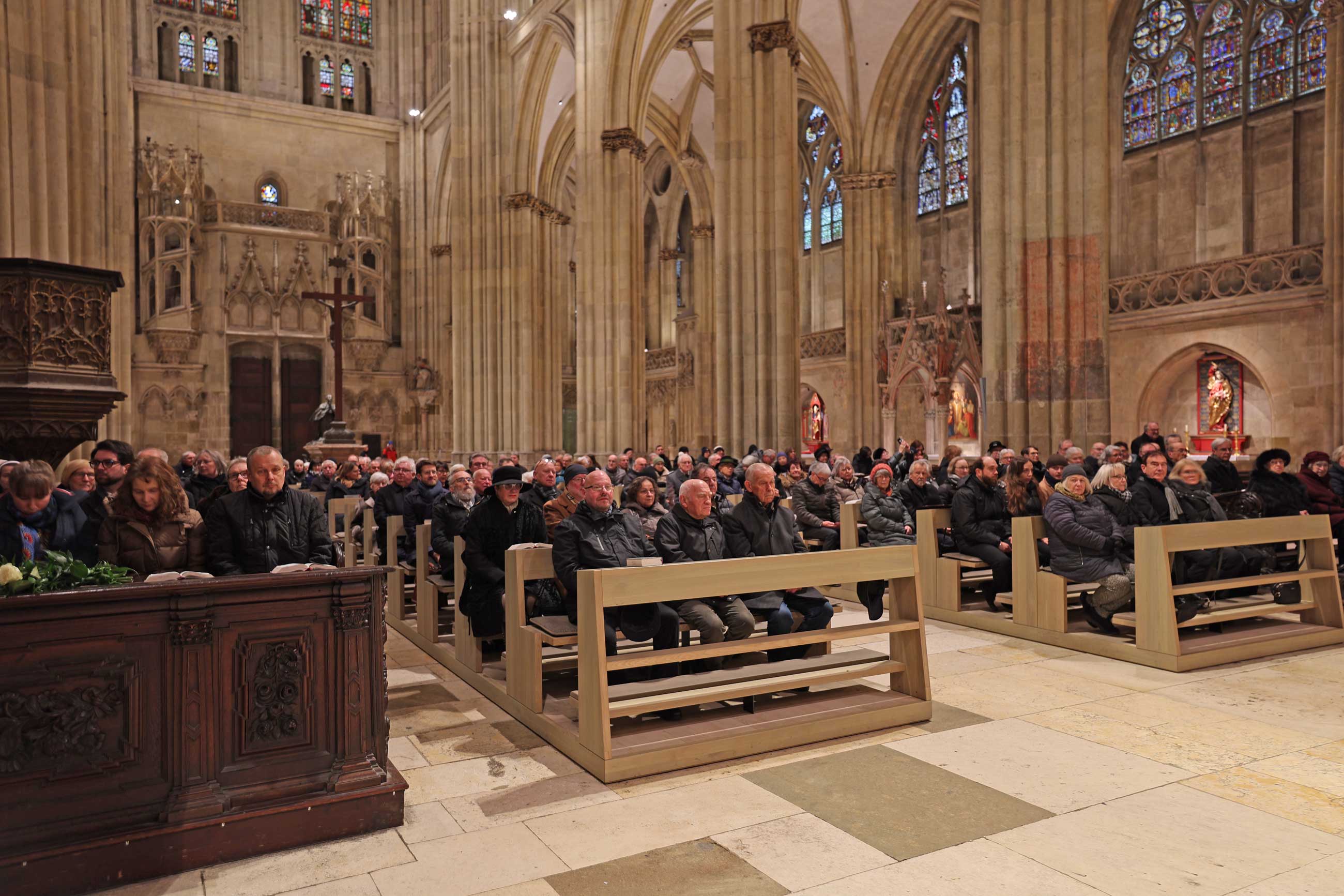 Am Altar feierten mit Bischof Rudolf das Domkapitel und dessen Emeriti sowie Diakon Johann Graf. Der Mädchenchor der Regensburger Domspatzen gestaltete die Feier musikalisch. An der Orgel spielte Domorganist Prof. Franz Josef Stoiber.