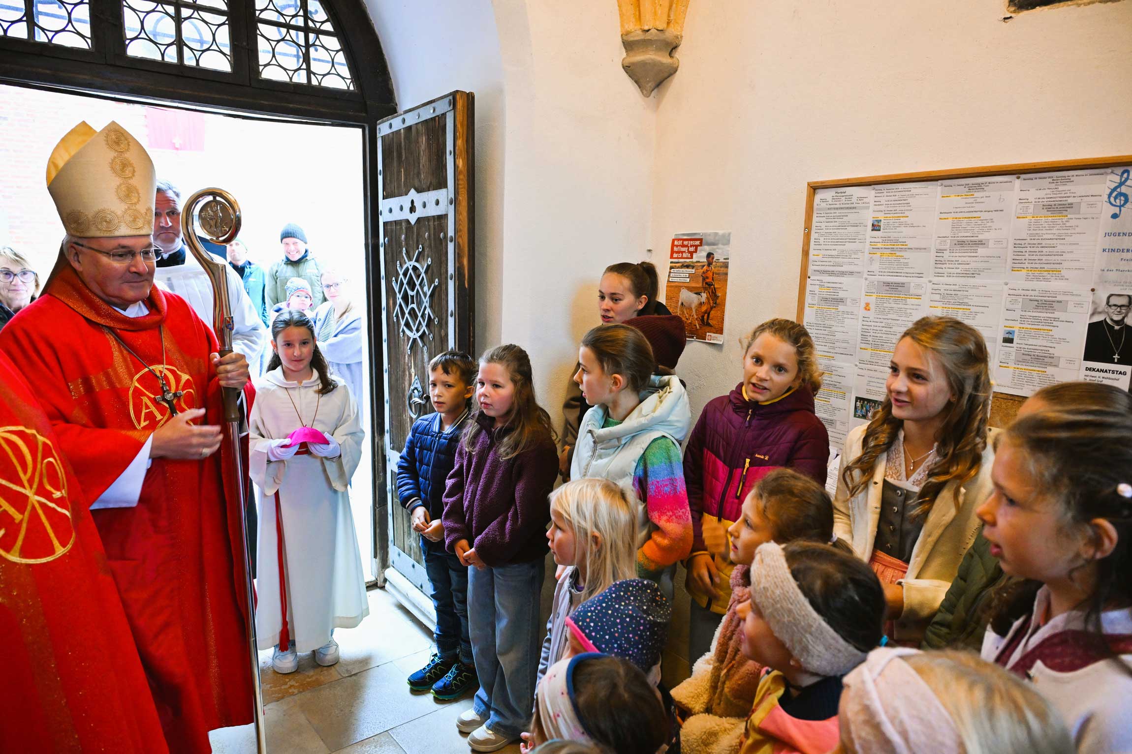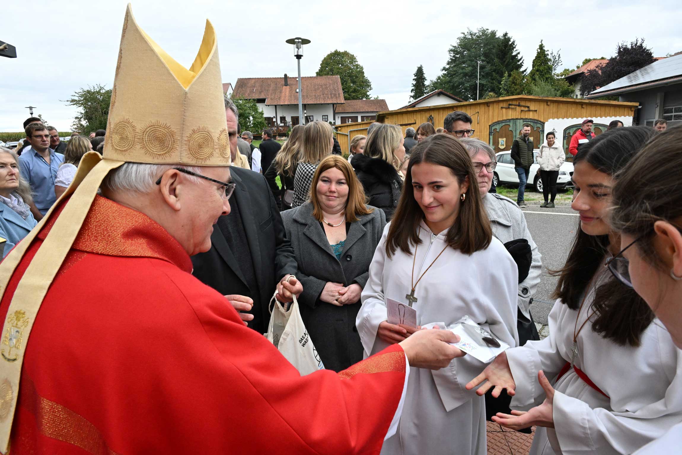 Pfarrer Pater Thomas Kattayl Johnson hieß den Bischof herzlich willkommen und betonte die Bedeutung seines persönlichen Kommens als Zeichen der Verbundenheit in der Gemeinschaft der Gläubigen. Er bat darum, die Jugendlichen durch die Firmung mit Freude, Mut und Zuversicht im Glauben zu stärken. Musikalisch gestaltet wurde die Feier durch den Kinderchor unter der Leitung von Veronika Münch. Bischof Rudolf nahm sich im Anschluss Zeit, jedem Firmling den persönlichen Segen zu spenden und ein Erinnerungsbild zu überreichen.