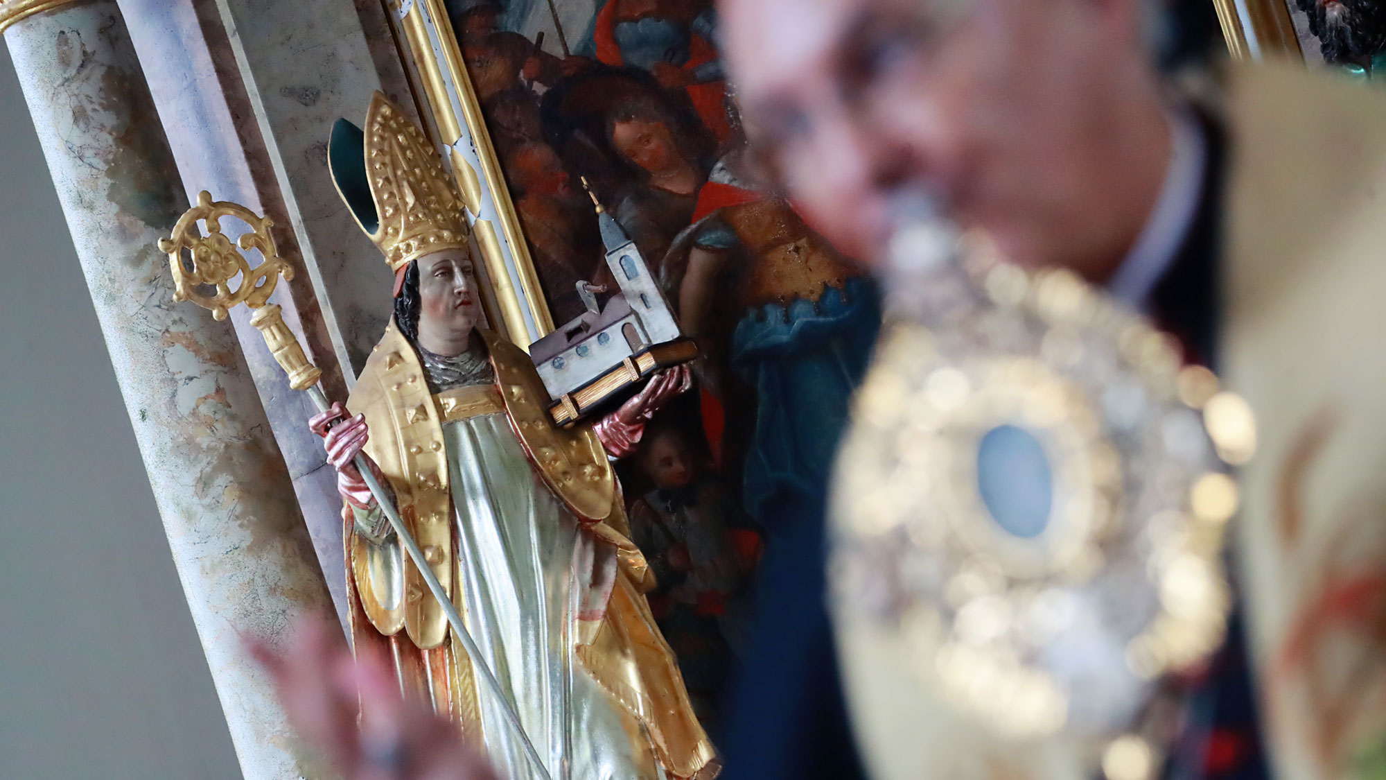Wolfgang, dessen unverkennbares Attribut das Beil ist, gilt als großer Kirchenbauer. Aber eine Kirche ist nicht nur aus Steinen und Holz gebaut. Viel wichtiger sei es, dass Wolfgang seine Kirche für die Gemeinschaft der Gläubigen gebaut habe, so Bischof Dr. Rudolf Voderholzer bei seinem Impuls in der kleinen Loitersdorfer Kirche. Die Menschen, die sich im Geiste Jesu in der Kirche versammeln, sind das Wichtigste. Bischof Rudolf würdigte den Bistumspatron zudem als einen Mann mit großer Umsicht und großer Leidenschaft. Wolfgang war ein Mensch mit einer großen missionarischen Begeisterung: „Er hat viele wichtige Weichen gestellt.“