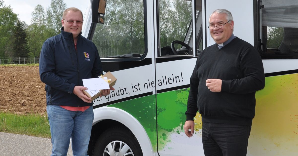 Msgr. Thomas Schmid, Beauftragter für Missionarische Pastorale Dienste, hat zum <link http: www.bistum-regensburg.de news _blank external-link-new-window heilige>Florianitag 21 Kreis- und Stadtbrandräte in allen Landkreisen und Städten im Bistumsbereich persönlich besucht und den Feuerwehren einen Brief des Regensburger Bischofs Rudolf Voderholzer übergeben.
