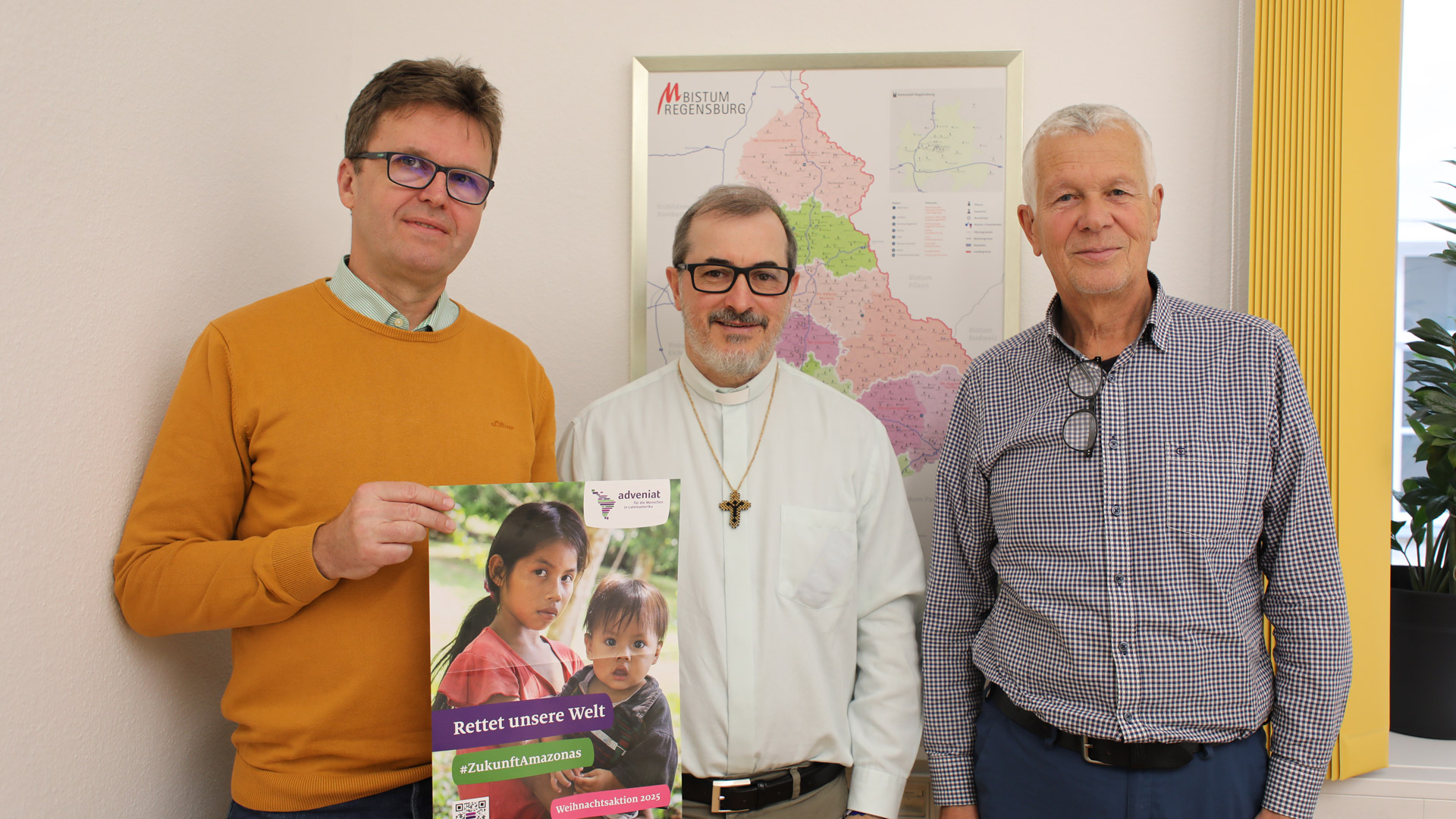 Auch 2025 ruft das katholische Hilfswerk Adveniat mit seiner Weihnachtsaktion zur Solidarität mit den Menschen in Lateinamerika auf. Die Aktion steht in diesem Jahr unter dem Leitwort „Rettet unsere Welt. #ZukunftAmazonas“. Vor diesem Hintergrund besuchte der brasilianische Bischof Vicente Ferreira aus der Diözese Livramento de Nossa Senhora im Bundesstaat Bahia das Bistum Regensburg. Seine Diözese umfasst im Nordosten Brasiliens rund 600 kleine kirchliche Gemeinden. Mit Unterstützung von Adveniat engagiert sich Bischof Vicente gemeinsam mit den Menschen vor Ort immer wieder gegen die Zerstörung der Umwelt durch internationale Minengesellschaften.