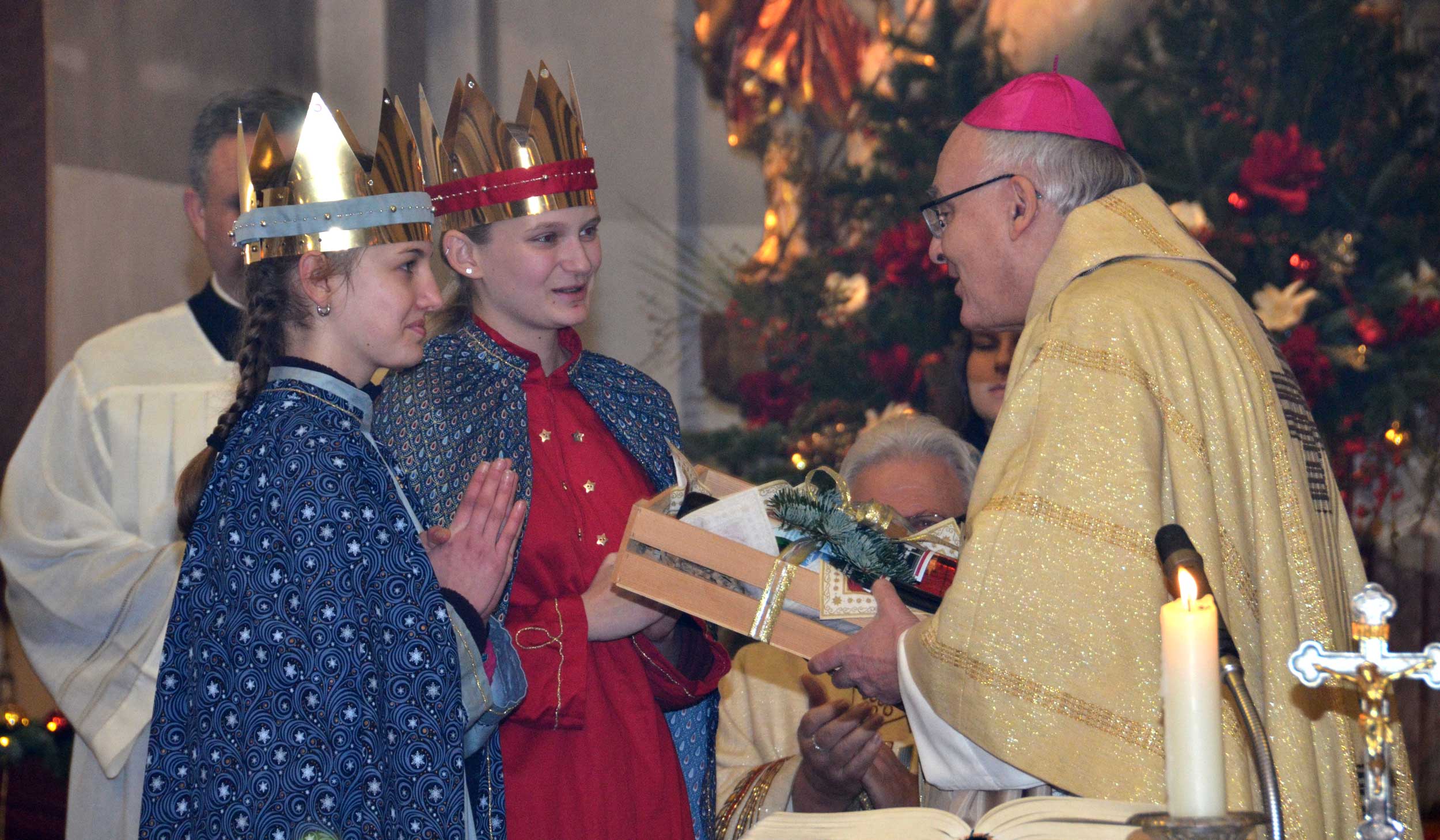 Ausgehend vom Tagesevangelium (Mt 2, 1–12) zeigte der Bischof den Kontrast zwischen dem machtbesessenen König Herodes und dem wahren König, Jesus Christus, auf. Herodes sei ein gefürchteter, von den Römern geduldeter Herrscher gewesen, der aus Angst um seine Macht sogar zur Heuchelei griff („Dann schickte er sie nach Betlehem und sagte: Geht und forscht sorgfältig nach dem Kind; und wenn ihr es gefunden habt, berichtet mir, damit auch ich hingehe und ihm huldige!“). Die Sterndeuter hingegen hätten den Stern als Zeichen des Himmels erkannt, ihm vertraut und einen weiten Weg auf sich genommen. Staunend und voller Freude fanden sie schließlich das Kind in der Krippe, an einem Ort, den man kaum für den „König der Könige“ erwarten würde. Sie durchschauten Herodes, erhielten eine göttliche Botschaft und kamen seiner Bitte nicht nach („Weil ihnen aber im Traum geboten wurde, nicht zu Herodes zurückzukehren, zogen sie auf einem anderen Weg heim in ihr Land.“) „Ihre Weisheit führte sie zur Wahrheit“, und als Menschen, die nach der Wahrheit suchten und sie in dem Kind auf dem Schoß seiner Mutter erkannten, seien sie wahrhaft „königliche“ Menschen. Jesus sei der wahre König: geboren im Stall, gekrönt mit Dornen, dienend statt herrschend, bis hin zur Hingabe seines Lebens. Ein König der Herzen und des Himmels. Diesem König hätten die Sternsinger mit ihrem Einsatz gedient und seien mit dem Segensspruch selbst zum Segen für andere geworden.