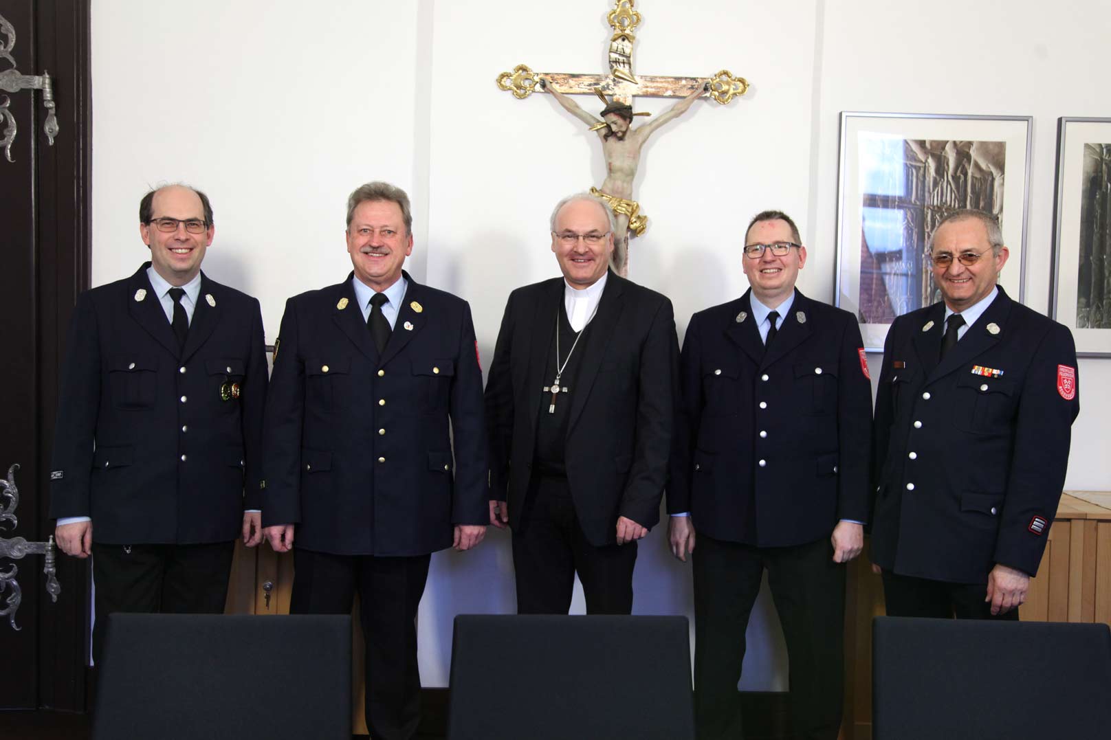 Stadtbrandrat Johann Schmidbauer und Löschzugführer Altstadt Michael Rewitzer kamen zum Besuch bei Bischof Rudolf gleich mit dem Feuerwehrauto vorgefahren. Der zweite Teil der Truppe bestand aus Michael Bruckmüller und Michael Sauer, beide zuständig für die Organisation des Ereignisses, das mit ein Grund für das Treffen mit dem Regensburger Oberhirten ist: Die Segnung des neuen Gerätehauses des <link http: www.lz-altstadt.de home _blank external-link-new-window>Löschzuges Altstadt in der Kirchmayerstraße. Bischof Voderholzer wird die Segnung am 5. Mai 2018 übernehmen. Der Gottesdienst findet um 16.30 Uhr an diesem Tag statt. Damit wird das neue Haus einen Tag nach dem Florianifest gesegnet – dem Gedenktag des Schutzpatrons der Feuerwehr. In Zukunft soll es als Geschäftsstelle der Freiwilligen Feuerwehr Regensburg dienen sowie als zentrale Kleiderkammer derselben, Gerätehaus für den Löschzug Altstadt und für die Unterstützungsgruppe örtliche Einsatzleitung.