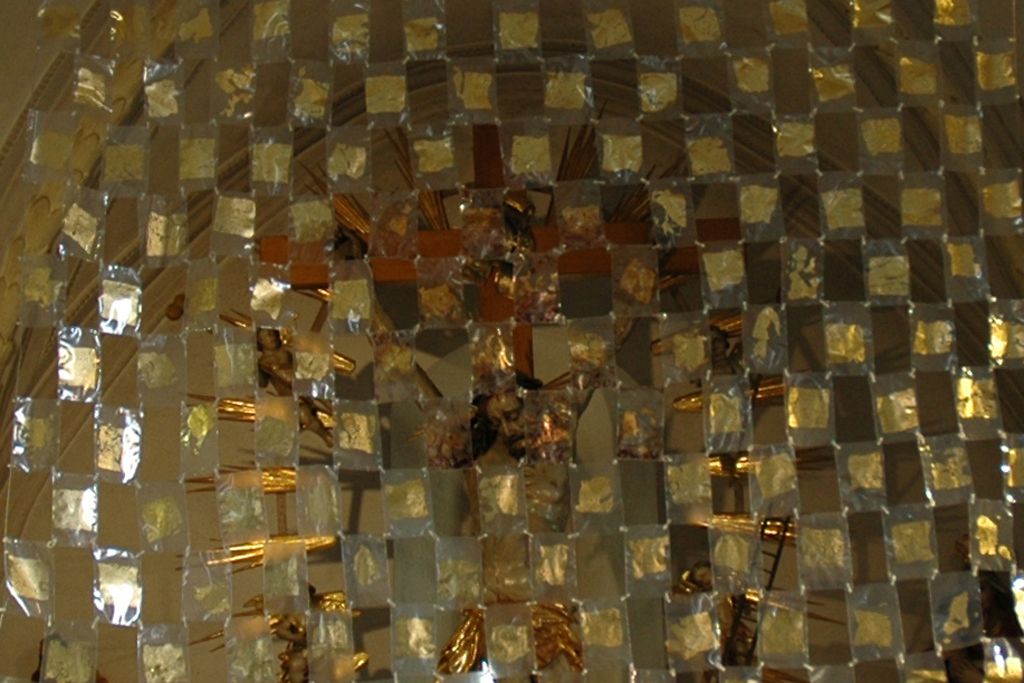 Die Installation verknüpft mit 144 blutbefleckten Blattgoldplättchen zwei der am stärksten mit Leidenschaften besetzen Materialien und bringt sie in den Sakralbau der Universitätskapelle. Die Transparenz der Arbeit eröffnet optisch spannende Effekte. Diese werden ergänzt durch handgezeichnete Landkarten; sie zeigen Europa, Asien, Australien, sowie Nord- und Südamerika mit farbigen Markierungen. Blau ist dem Meer zugeordnet, andere Farben markieren Goldminen, Förderländer und Vorkommen.