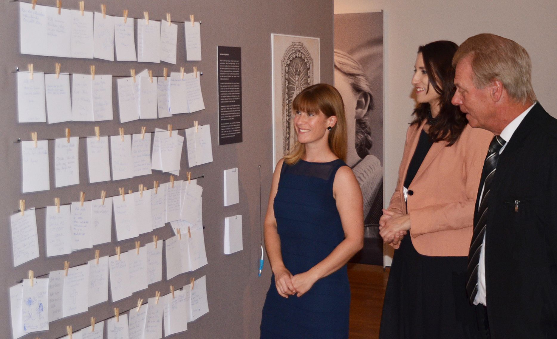 In der Ausstellung „Brücke zum Wunderbaren“ gab es neben einem überdimensionalen Andachtsbild des Gnadenbildes von Maria Läng für die Ausstellungsbesucher ebenfalls die Gelegenheit, ihre persönlichen Bitten und Wünsche aber auch ihren Dank schriftlich auf kleinen Zetteln festzuhalten. Diese wurden dann nebeneinander an mehrere Schnüre festgeklammert. „Danke, dass Du mir geholfen hast, mein Kind zu gebären“, „Jesus hilf meiner Tante, die Krebs hat“ oder „Hilf meinen Kindern, dass sie zu Rauchen aufhören!“, das waren nur einige der zahlreichen Dank- oder Bittbotschaften, die von Ausstellungsbesuchern in den vergangenen Wochen an die Votivwand geheftet wurden. Dompfarrer Scharf war sehr angetan von der Idee der beiden Ausstellungs-Kuratorinnen Sabine Tausch und Karin Geiger, die gesamten Zettel der Votivwand im Museum nach Ausstellungsende der Maria Läng-Kapelle zu übergeben. So würden die Fürbitten und Dankesbezeugungen gemäß der Intention der Besucherinnen und Besucher ihren angemessenen Platz in der Kapelle finden.