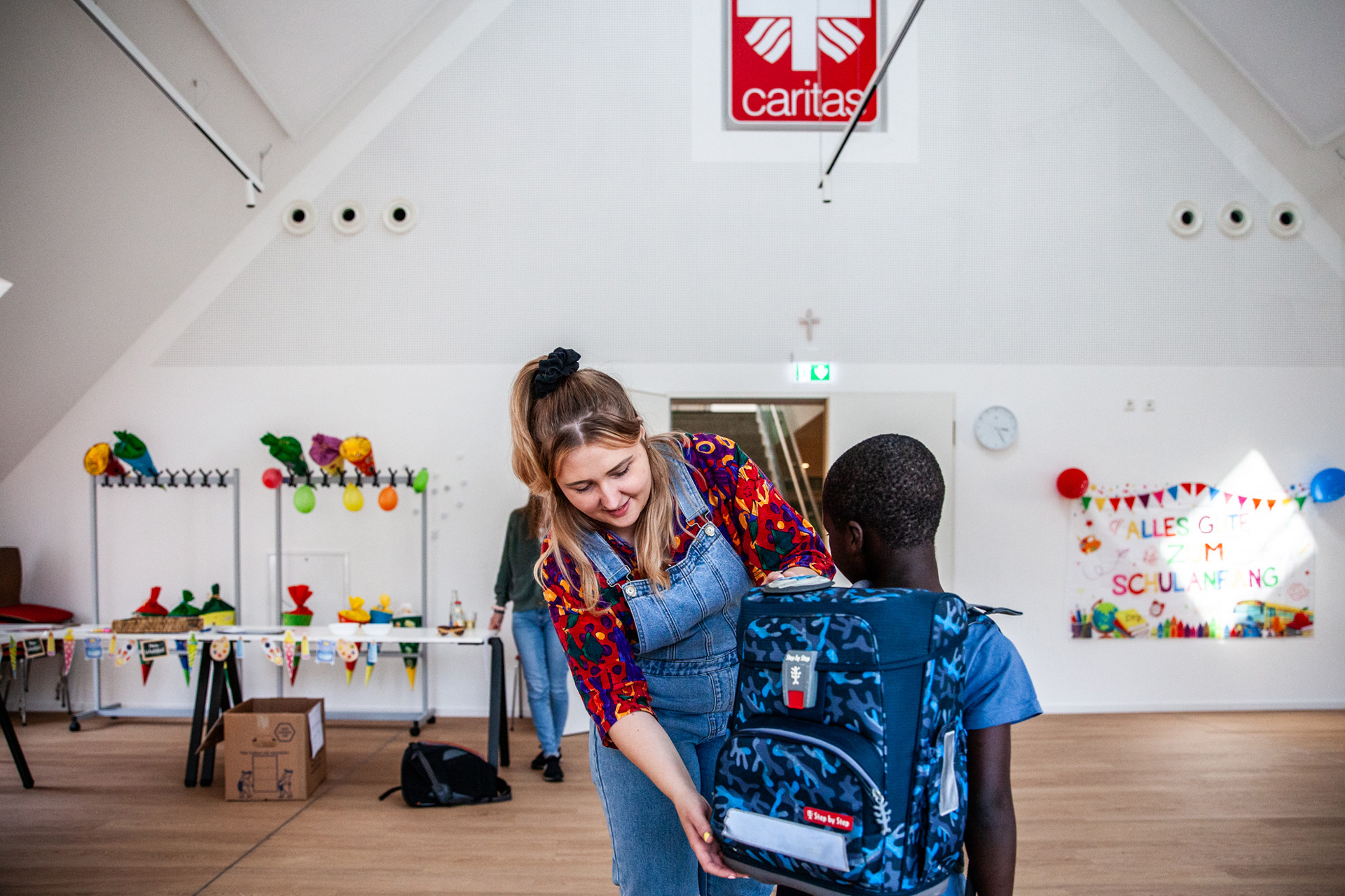 „Darf man hier auch länger bleiben?“, fragt ein Mädchen mit großen Augen, als es den geschmückten Raum im Caritas Beratungszentrum St. Gabriel betritt und sich seinen ersten Schulranzen aussuchen darf. Für viele Kinder in Deutschland ist der erste Schultag ein besonderer Moment, der sie mit Freude und Stolz erfüllt. Für viele geflüchtete Familien ist dieser Tag jedoch eine Herausforderung.