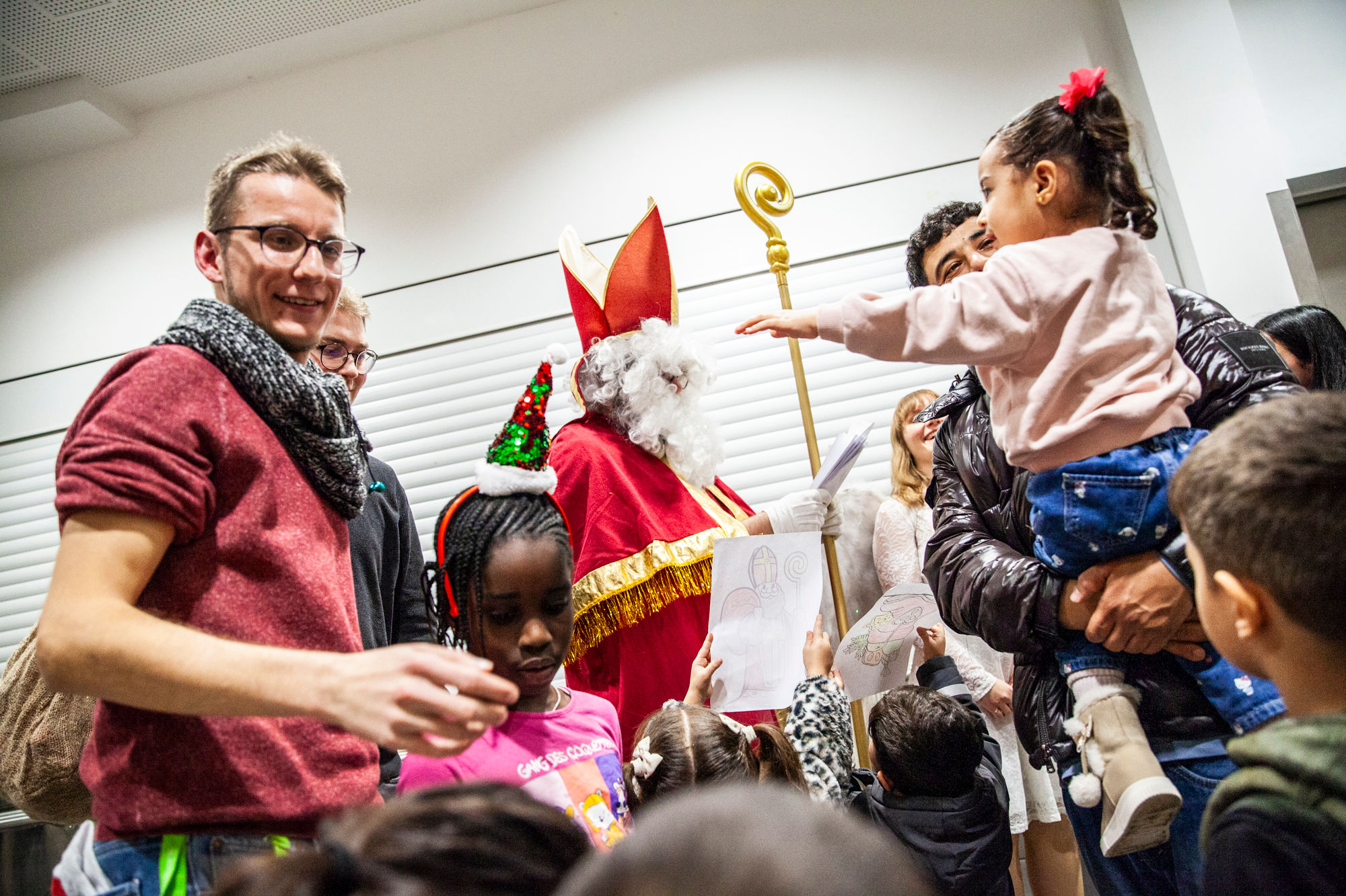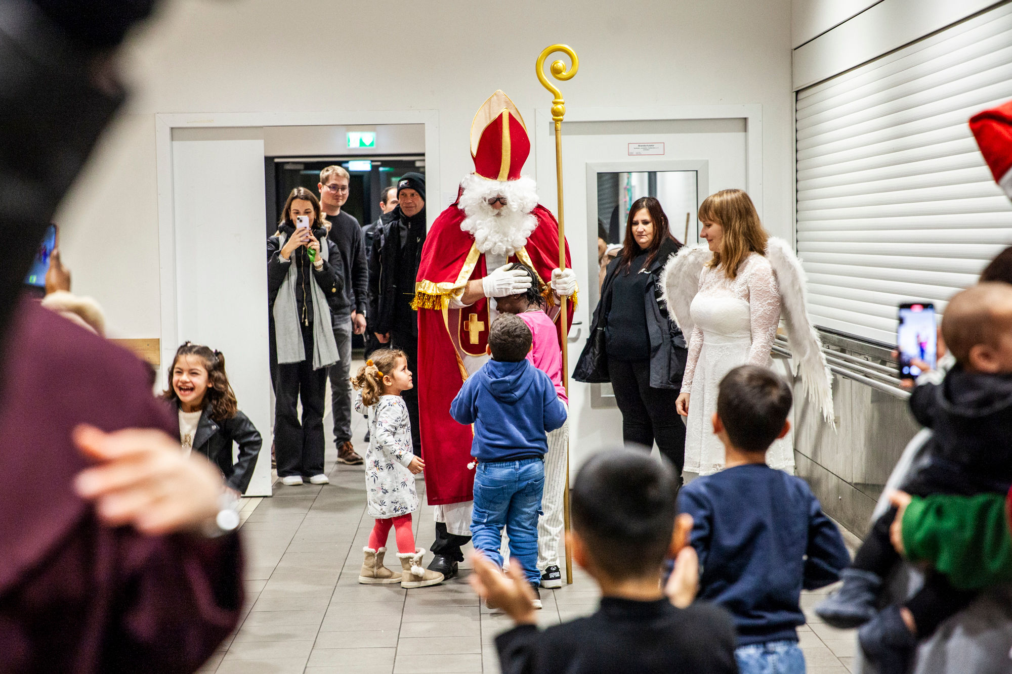 Papa Noel, Father Christmas oder Nikolaus – der Mann mit weißem Lockenhaar, rotem Gewand und goldenem Stab trägt viele Namen und ist Kindern auf der ganzen Welt bekannt. Entsprechend groß war die Freude, als sich am Abend des 4. Dezember die Türen der Kantine im Ankerzentrum öffneten und ein rotgewandeter Nikolaus gemeinsam mit einem glitzernden Engel eintrat. Die etwa 40 Kinder riefen begeistert „Papa Noel!“; die Mutigsten holten sich sofort eine Umarmung ab.