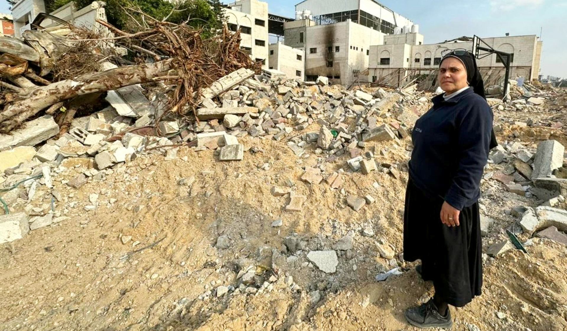 Die Telefonleitungen sind gekappt; Anrufe über Online-Dienst sind immer wieder unterbrochen: „Ziemlich…“, „Kirche…“, „…gut…“, nur ein paar Wortfetzen sind zu verstehen, wenn Mitarbeiter des weltweiten katholischen Hilfswerks „Kirche in Not“ (ACN) Schwester Nabila in Gaza-Stadt erreichen möchten. Sie hält sich seit Beginn des Krieges gegen die Hamas in der katholischen Pfarrkirche „Heilige Familie“ in Gaza-Stadt auf. Dort kümmert sie sich um die eingeschlossenen Menschen. In den zurückliegenden Wochen tobten schwere Kämpfe im Viertel Al Zeyton, in dem sich die einzige katholische Gemeinde des Gaza-Streifens befindet.